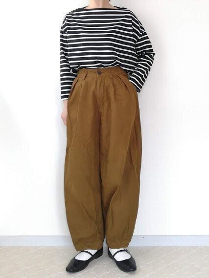 ボーダー×ゆるパンツのナチュラルスタイル。