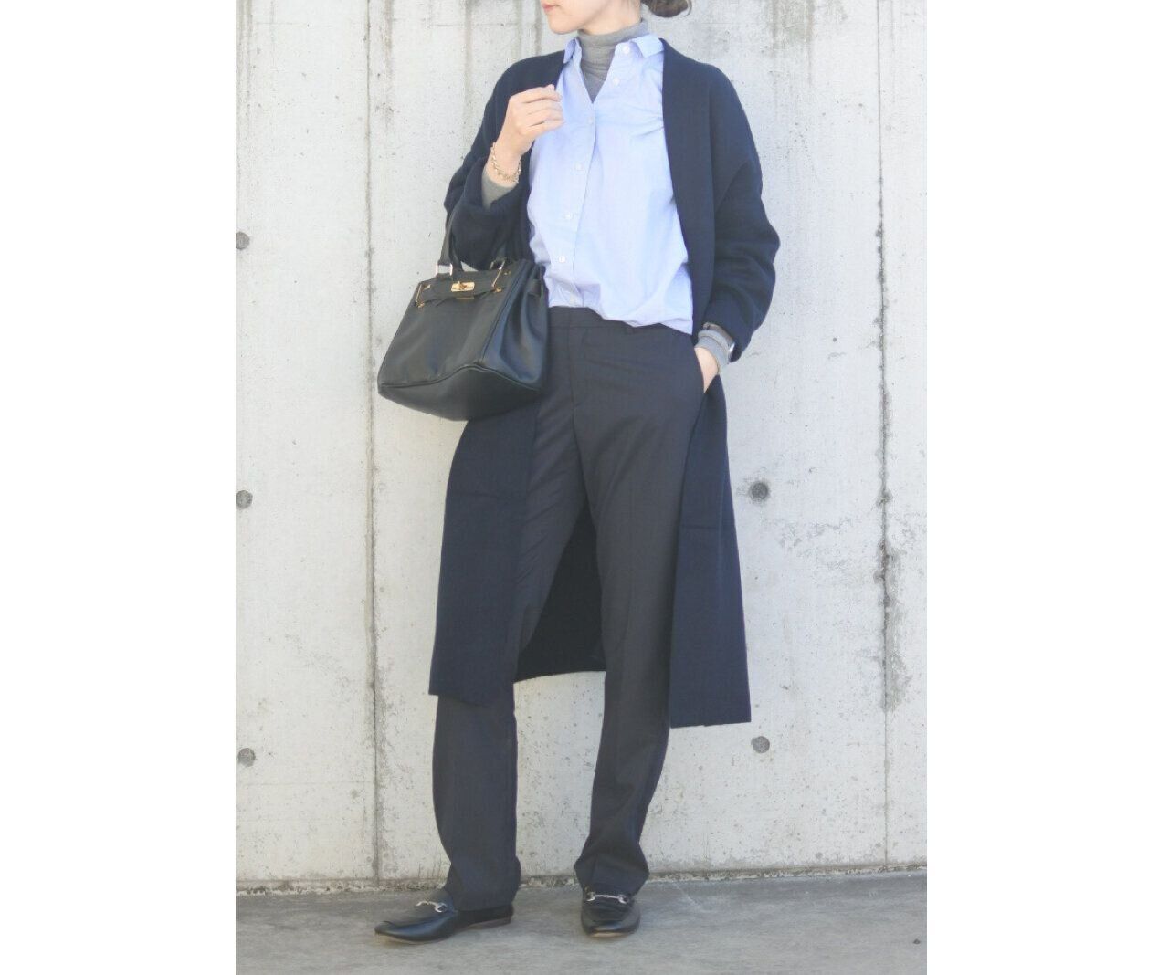 オフィスカジュアルならもう少し肩の力を抜いたカジュアルさが欲しいところです。