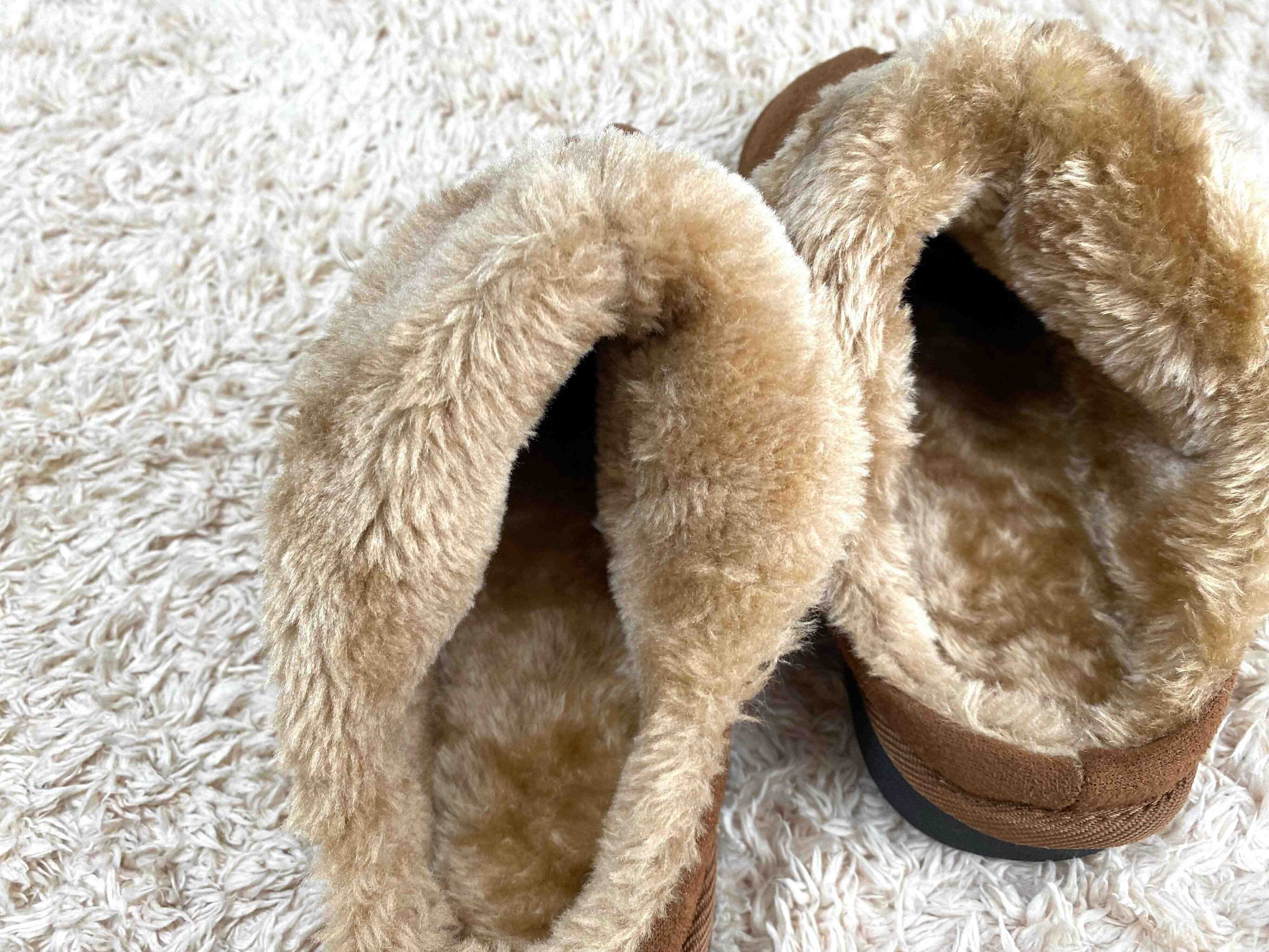 履き口からつま先までたっぷりのボアが履いた瞬間に足を包み込んでくれてポカポカ暖かいです。これから寒さが本格的になるこの時期にピッタリのアイテムですね!