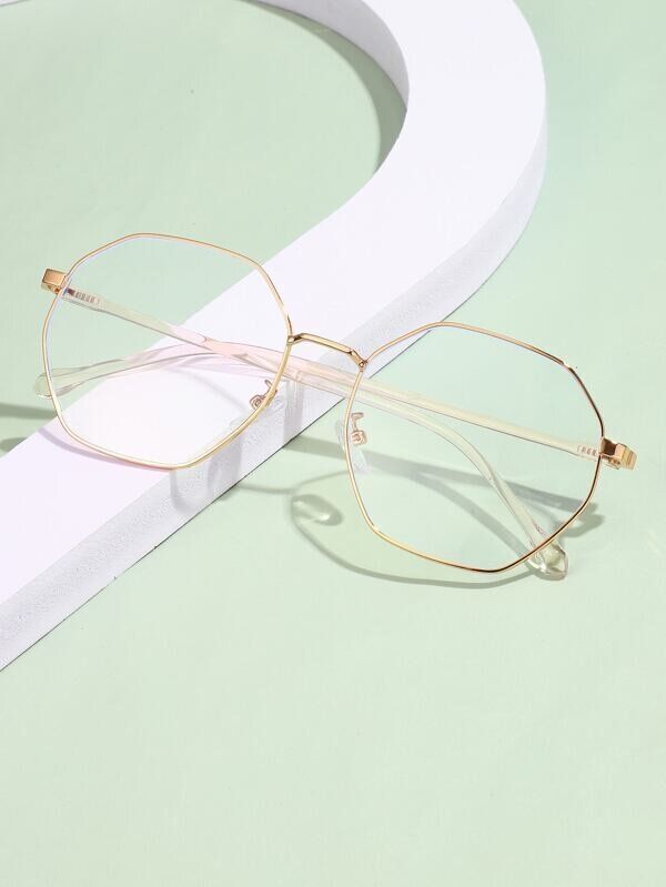 六角形の形が個性的なデザインの金属フレームのメガネ。口コミによると、思ったよりもレンズが大きいそう。付属のケースはしっかりとしたつくりのようです。