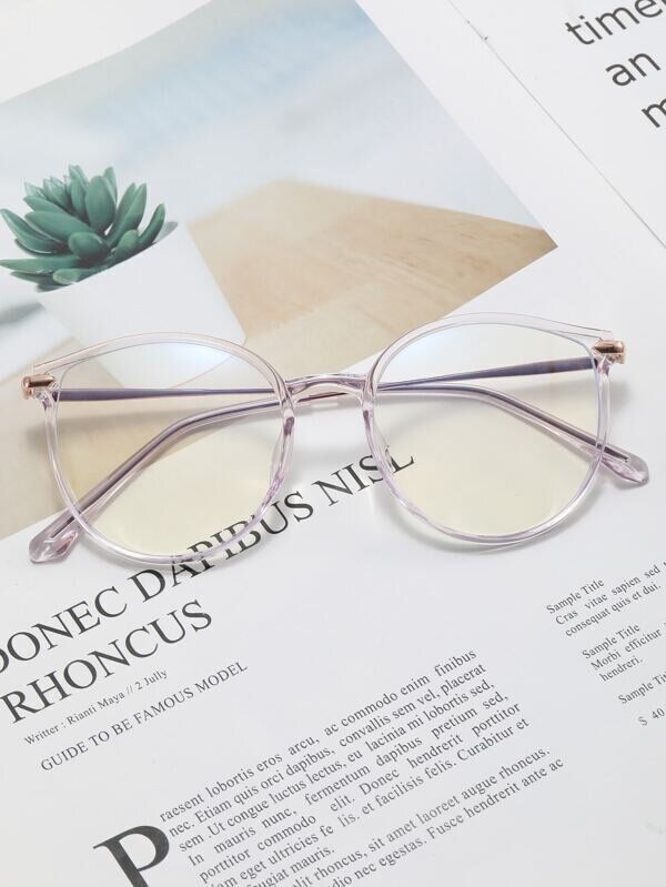 上品なライラックパープルカラーのブルーライトカットメガネ。口コミによると、レンズ自体は少し大きめにできているそう。想像通りのかわいさだったと好評のようです。