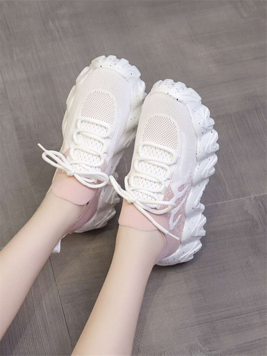 パステル調のピンクとホワイトがかわいらしいスニーカーです。デザイン性も重視されていて、ファッションとしても活躍します。