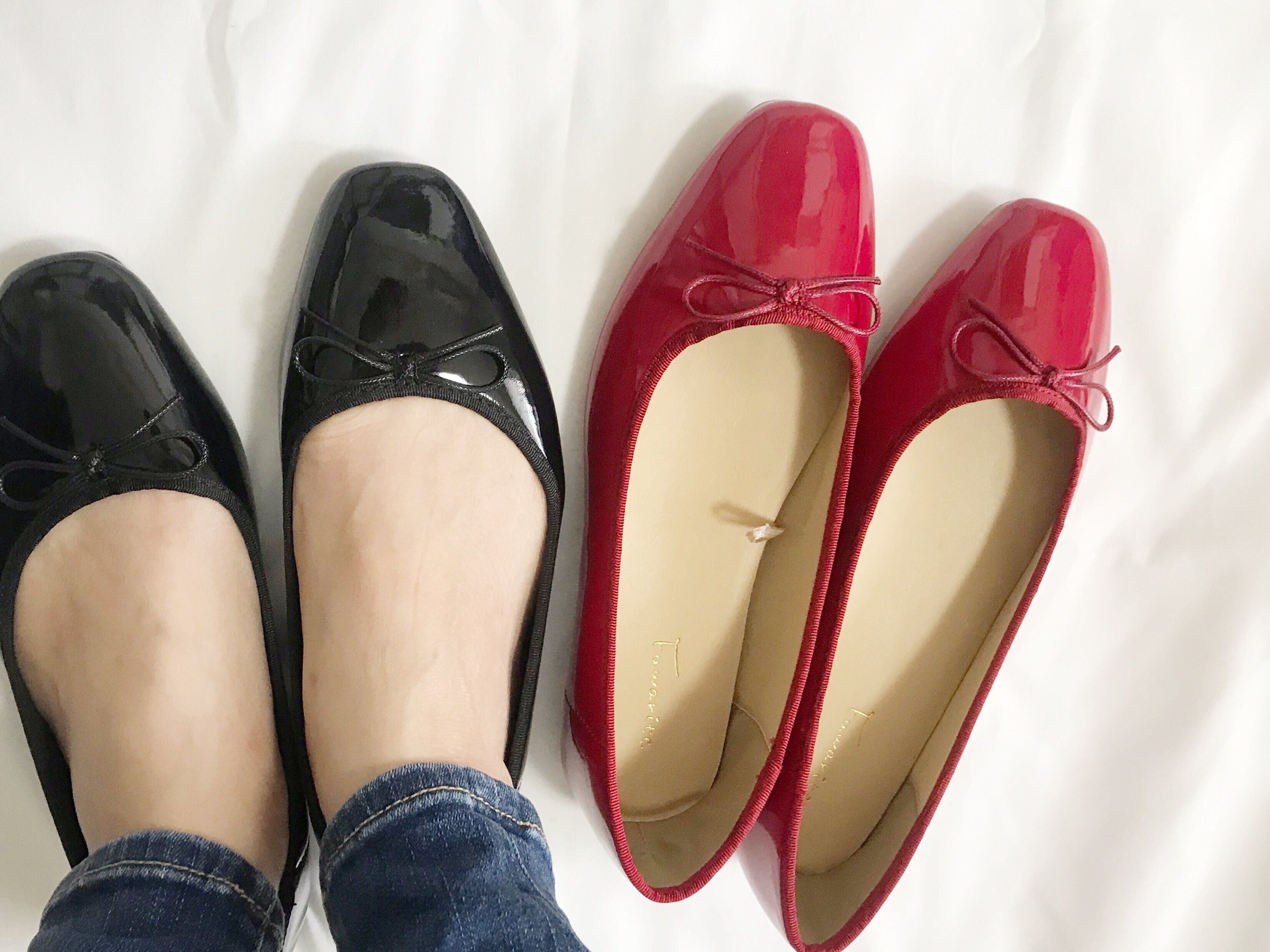 今回筆者は撥水加工がされているエナメル調のブラックとレッドの2足を購入しました。