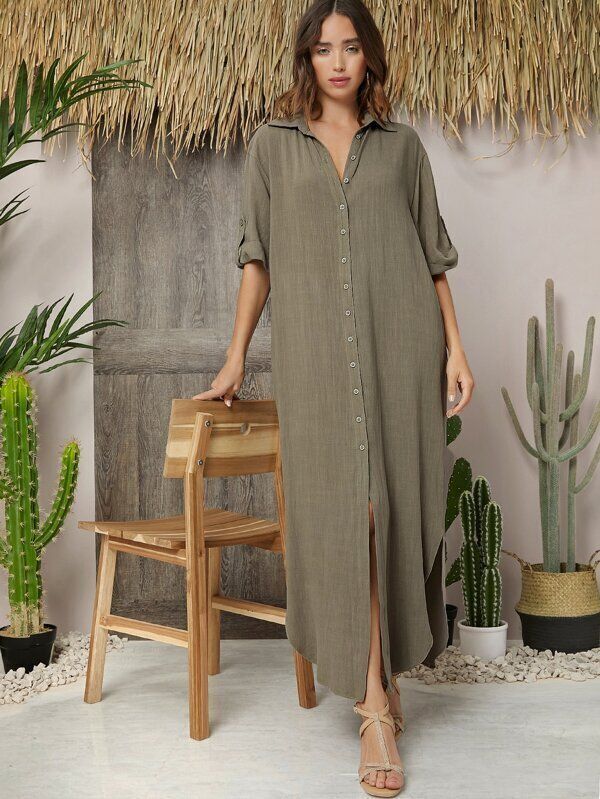ラフに着られる!リネンのシャツドレス