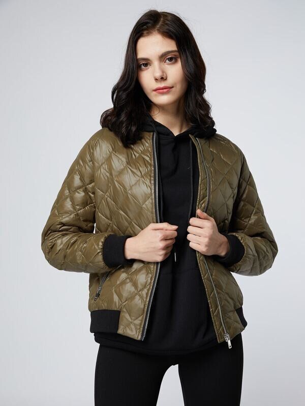 落ち着いたカラーでおしゃれなデザインのキルティングダウンコート。薄めに作られているので、インナーダウンとして着ることも可能。ブラックのパンツやトップスと合わせれば、シックに着こなすことができますね。