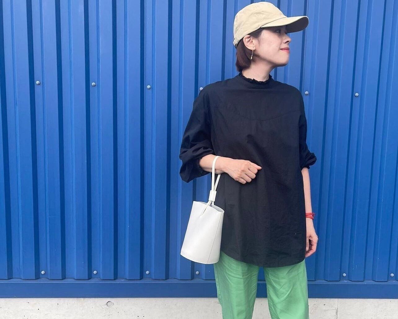 最後は、大好きなカラーアイテムとの組み合わせ。
