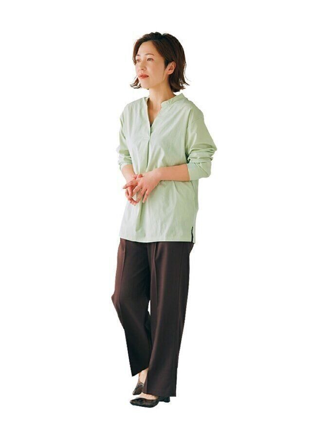 「程よい厚みで高級感があるコットン素材。アイロンなしでもシワっぽくならないのがありがたい!着回し力の高さも魅力です」。