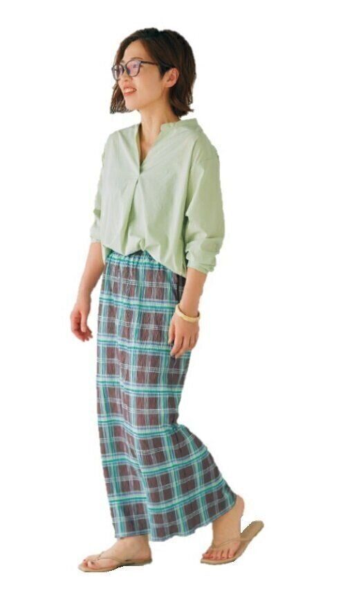 スカート/楽天(キラキラショップ)、サンダル/Re:EDIT、バングル/楽天(アバスクデザイン)