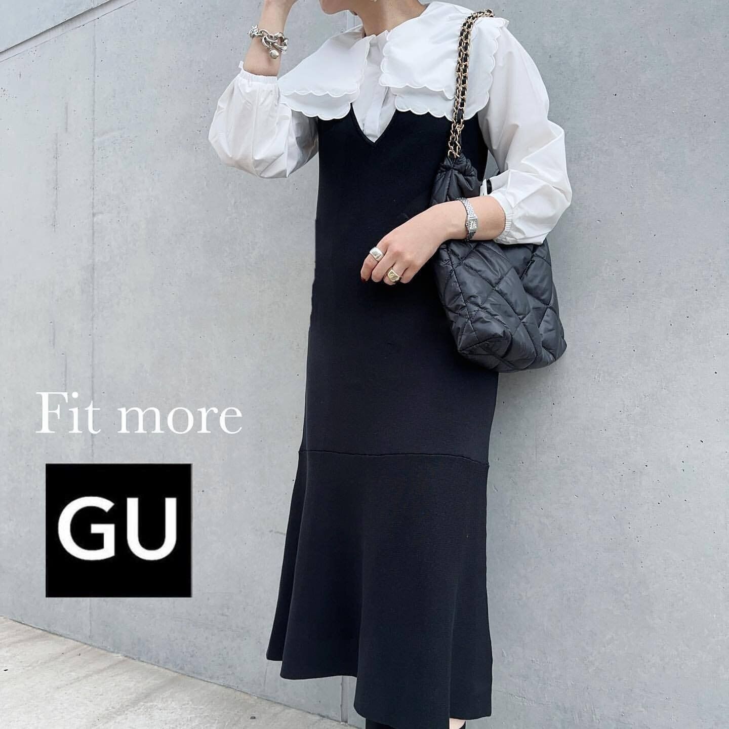 GUの「マーメイドジャンパードレス/1,490円」は、首元がざっくりと開いたデザインで、上半身をシャープに見せてくれるアイテム。広がりのあるマーメイドデザインなら、気になる太ももも、まるっとカバーできます。ブラウスからリブニットまでインナーをアレンジしながらロングシーズン着回せるハイコスパなワンピースとしても注目です。