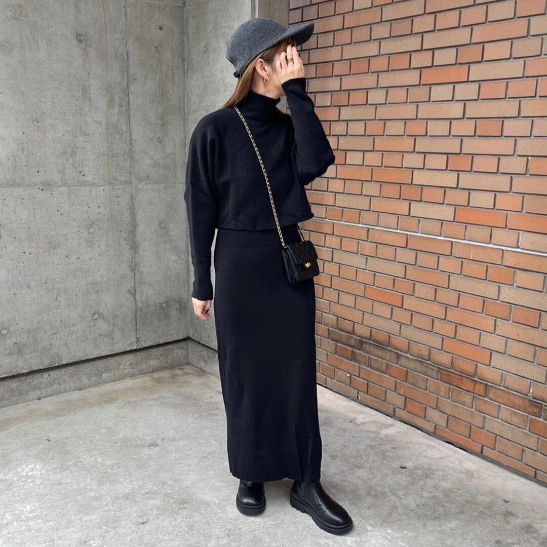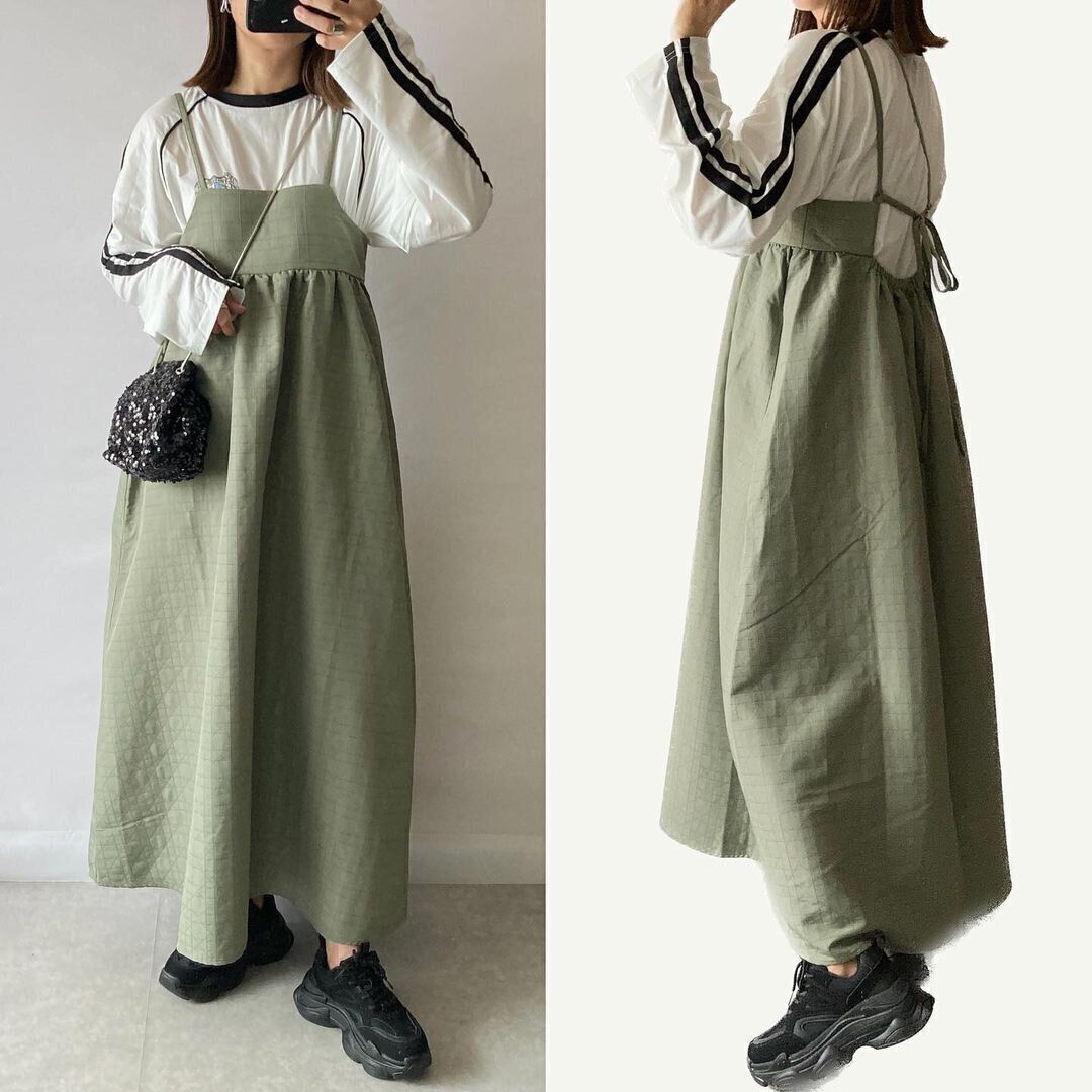 ドルマンニットとキャミワンピースがセットになったワンピースなら、ロング丈でも重心が軽く見えて◎。それぞれ単品使いもできるので着回し幅が広い点もおすすめポイントです。