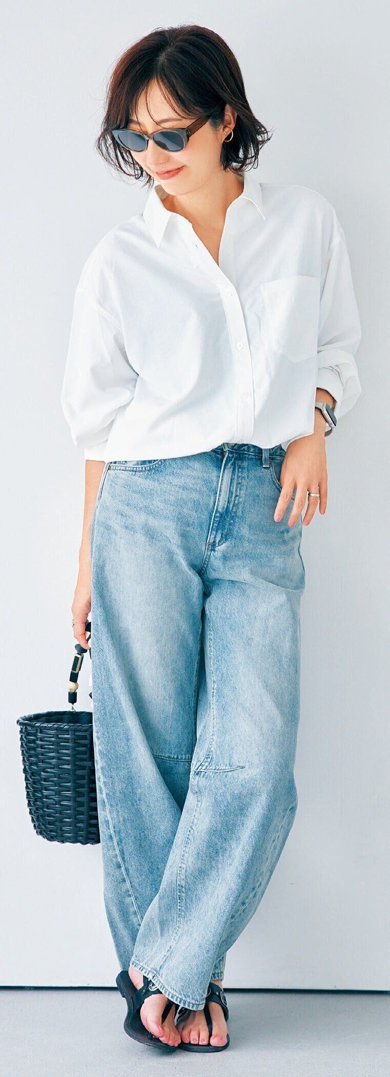 定番アイテムこそ毎年買い直すのがおしゃれの近道。独特の太さで美脚見え&今っぽく決まるこのジーンズはまさに買い!