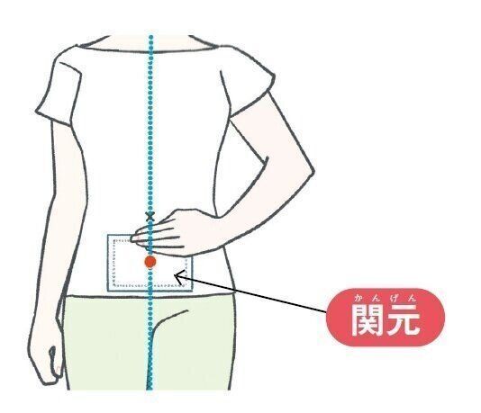 へその縦のラインで、へその下指4本分のところ。小腸の働きに効くツボとされています。下痢や消化不良などの不調のときは、ここを温めると胃腸が温まり、症状の改善につながります。