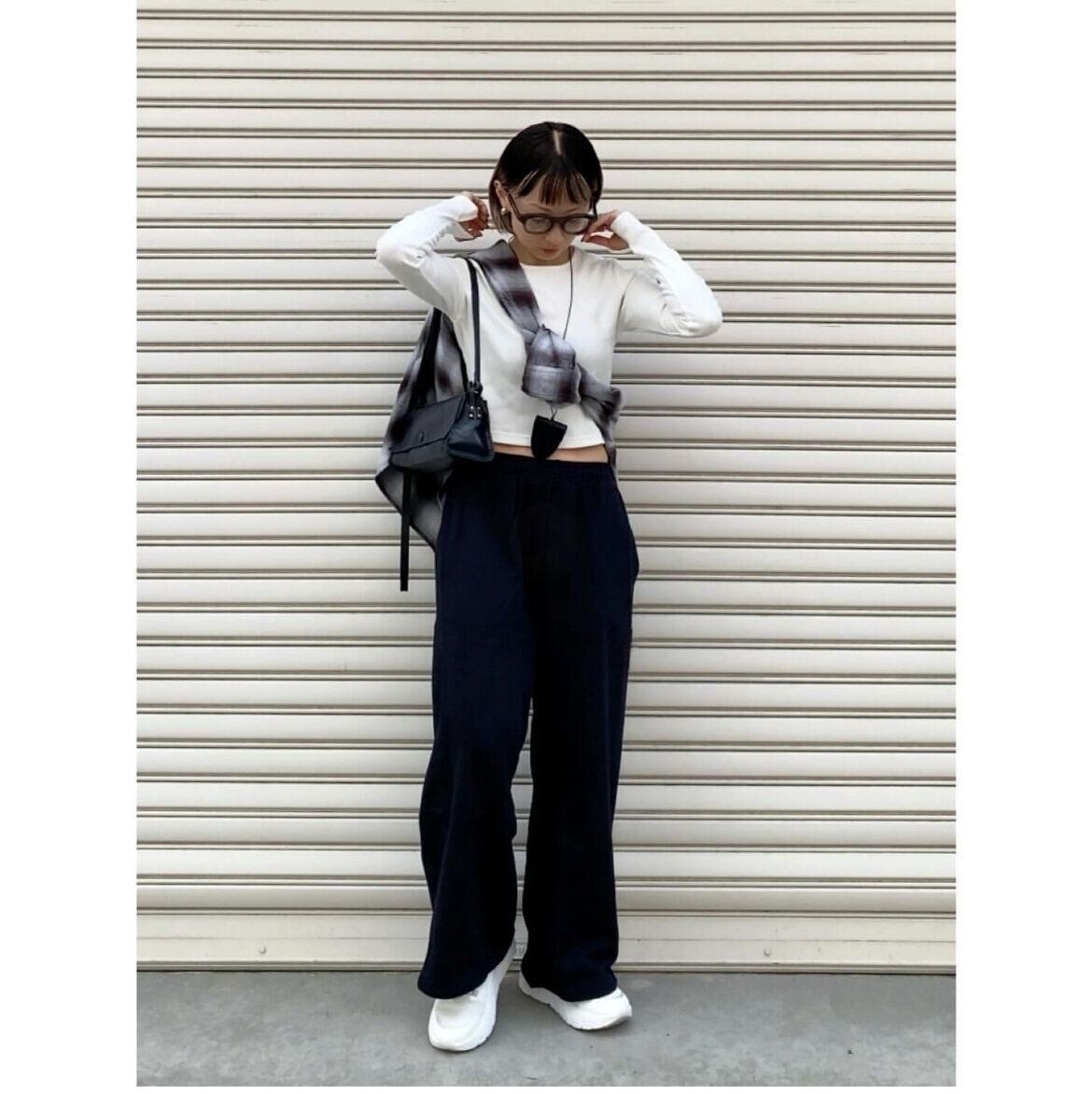 おしゃれ上級者な印象を与えたい人は、「フランネルシャツ」をビスチェ風に巻く着こなしもおすすめ。ポイントはシャツ以外のアイテムはカラーを統一&シンプルなデザインのアイテムをチョイスすること。そうすれば、一見難しそうなビスチェ風巻きもやりすぎ感なく、コーディネートに溶け込みます。新たな着こなしにチャレンジしてみたい人はトライしてみて♪
