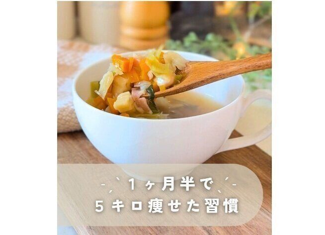 なんと気づけば、1カ月半で5kg痩せに成功!お腹はぺったんこで、お肌もツヤツヤ。体も心も健康に。nunn_dietさんのスープレシピ、さっそく教えてもらいましょう!