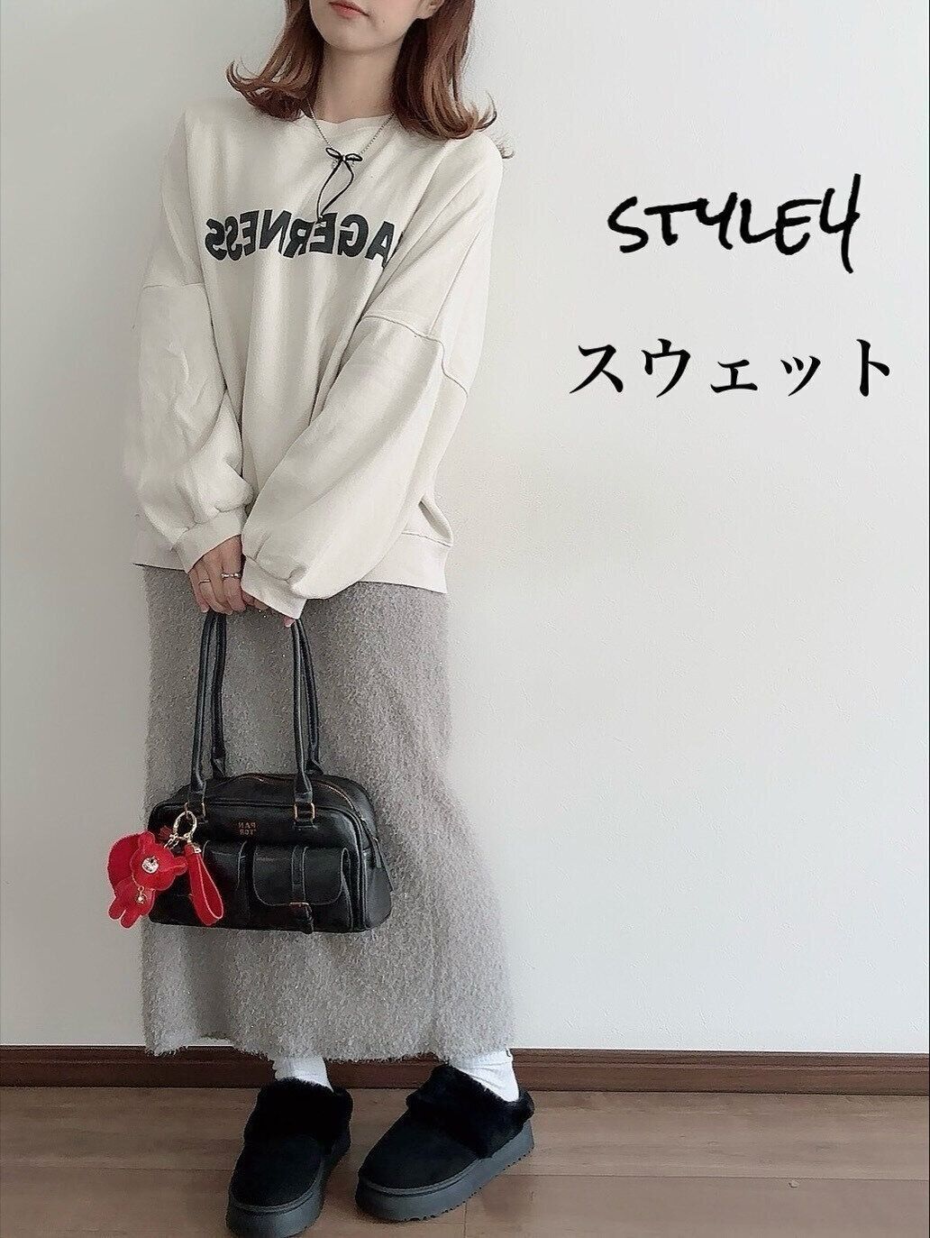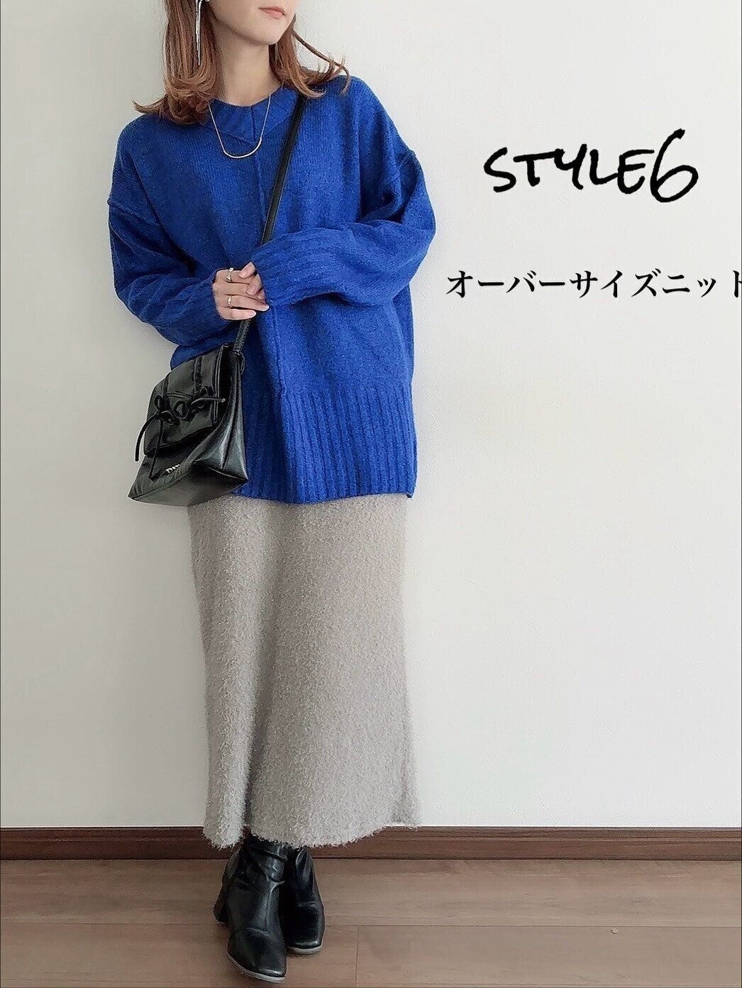シャギー生地のナロースカートなら重ね着などをしないシンプルなスタイルでもトレンド感満載のコーディネートが完成!