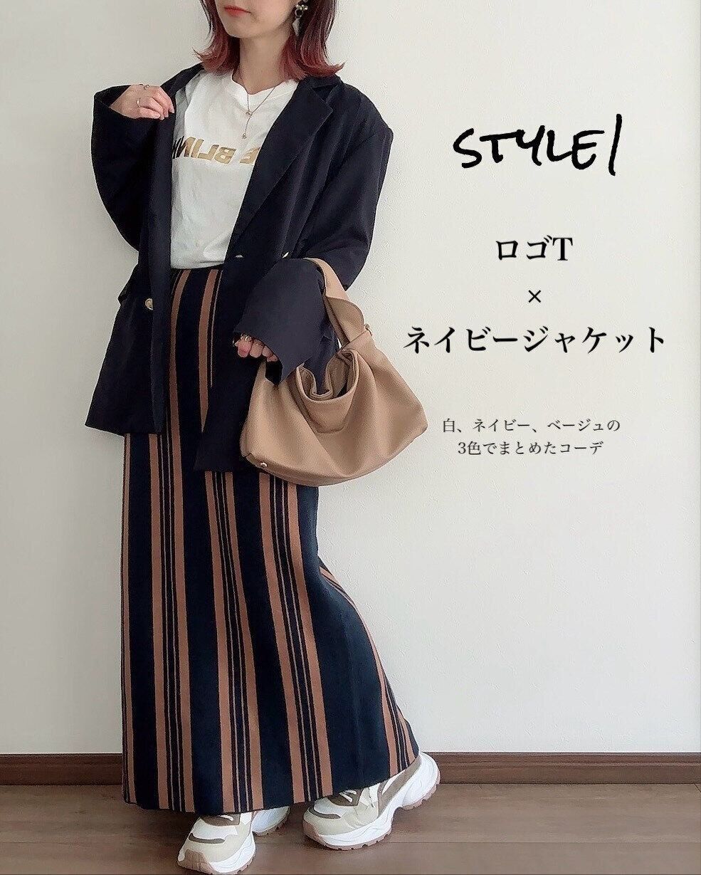 少し長さのあるトップスをあわせる場合はインナーはショート丈やボトムスにインしてバランスを調節するとこなれ感がアップ。ストライプ柄が足長効果も演出してくれるので、スタイルアップした印象を与えてくれます。ストライプ柄のナロースカートは特に低身長さんにおすすめ!