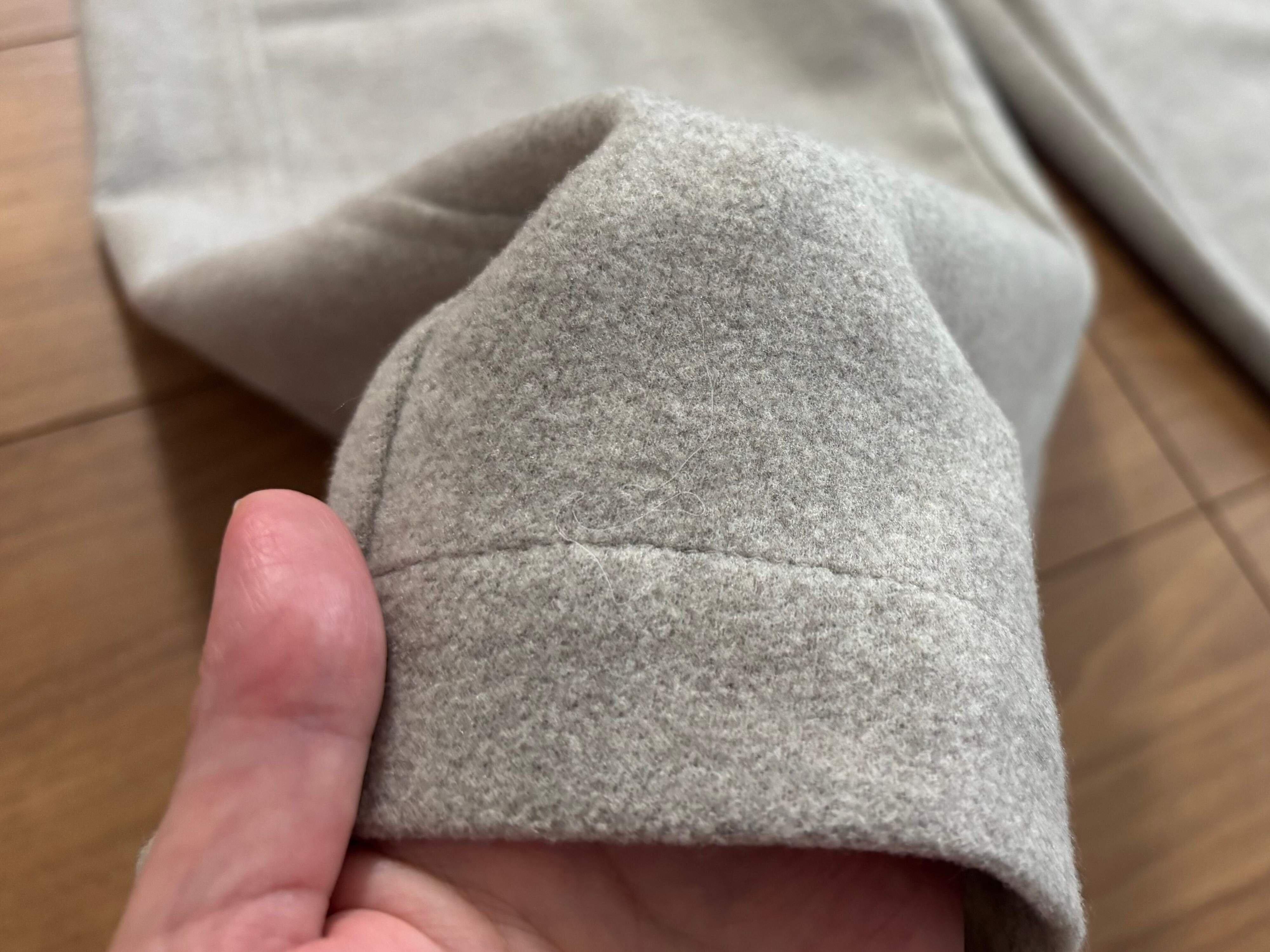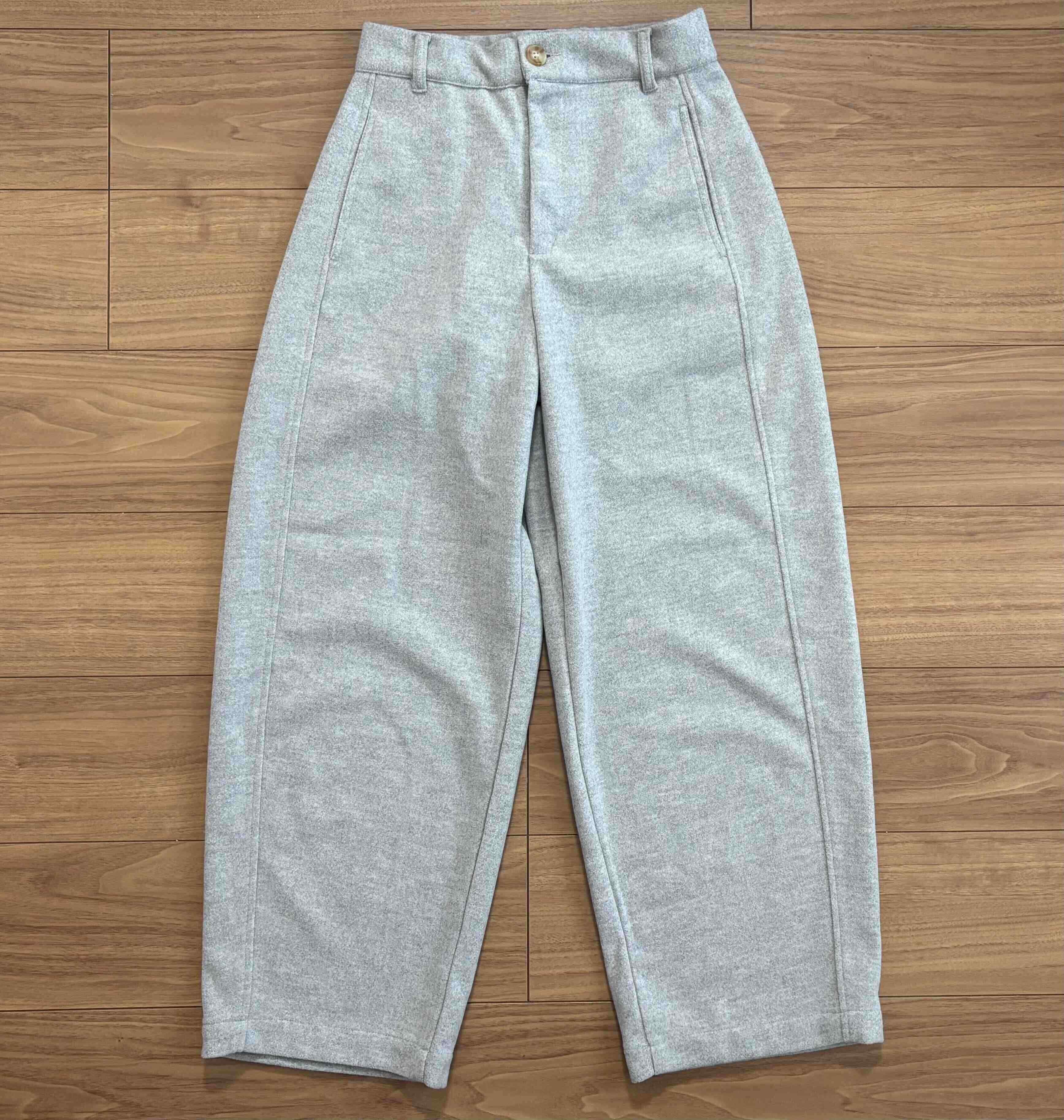 色味だけ見ると今のトレンドであるスウェットパンツのようなカジュアルな雰囲気の一枚です。