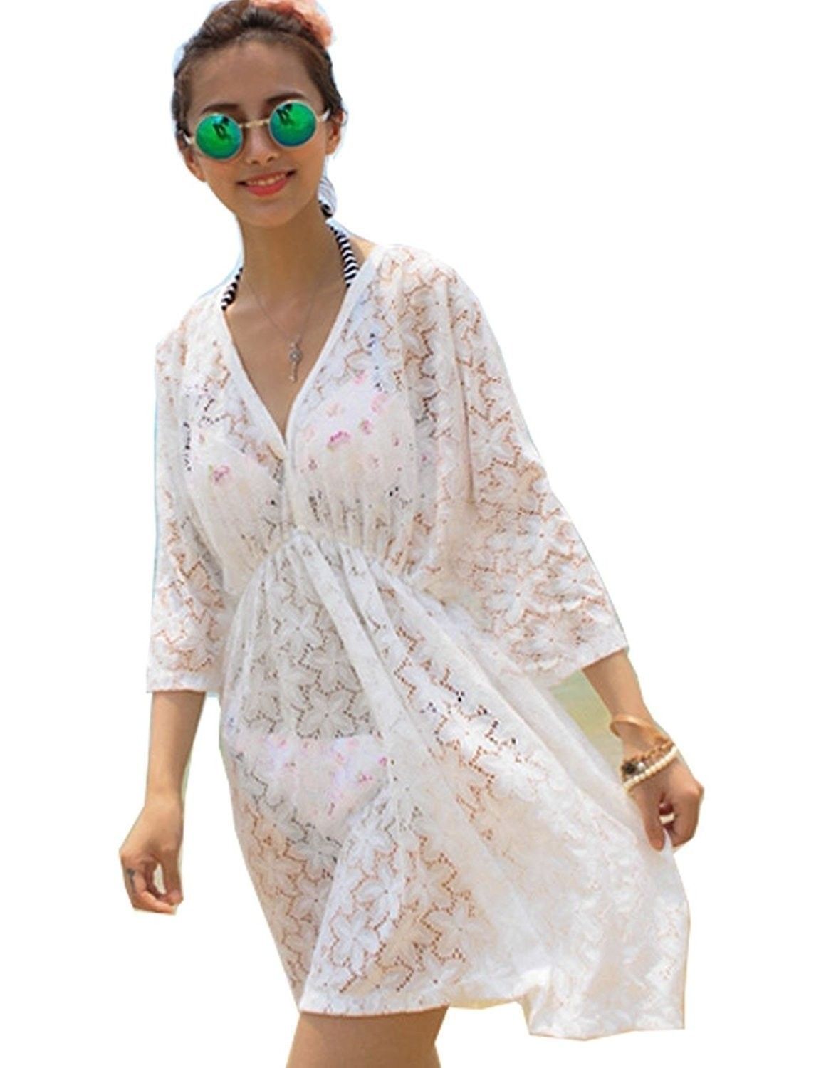 どうしても体型が気になる方には、水着の上からビーチドレスを羽織ってしまうのもおススメです。Jingjing1の透け感あるレース素材のビーチドレスなら、水着がほんのり透けて見えてセクシー。風に揺れるビーチドレスがエレガントさも演出してくれます。