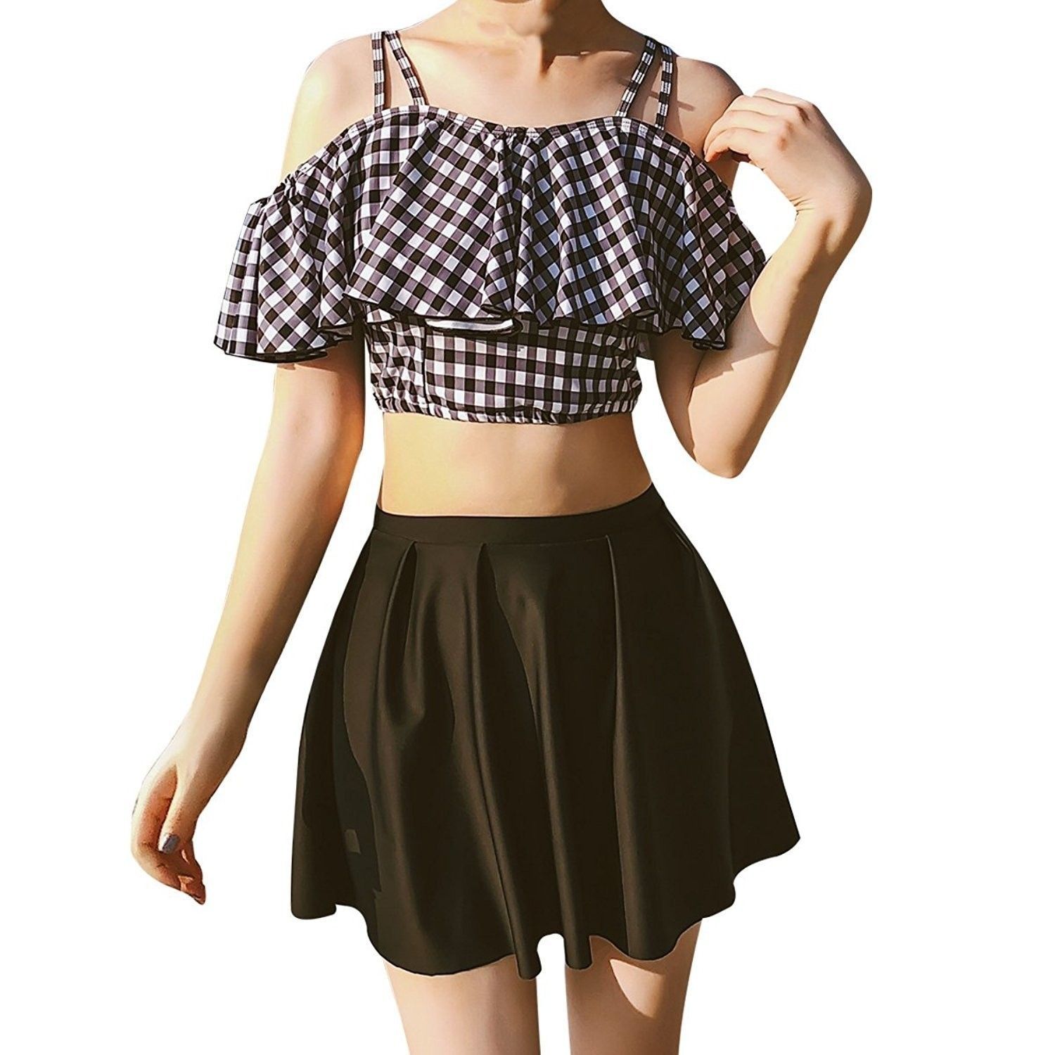 ヒップ~太ももにかけて気になる方におススメなのは、ワンピース型の水着です。女性らしい可愛さをアピールしつつ体型カバーもできる、まさに良いとこ取りの優秀アイテムです!