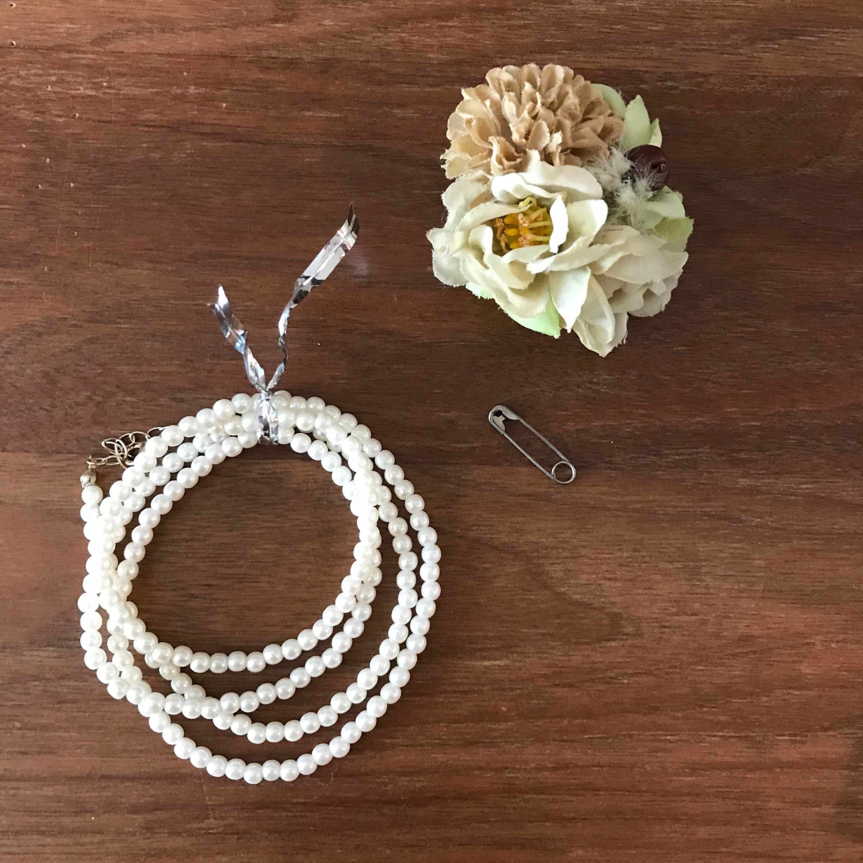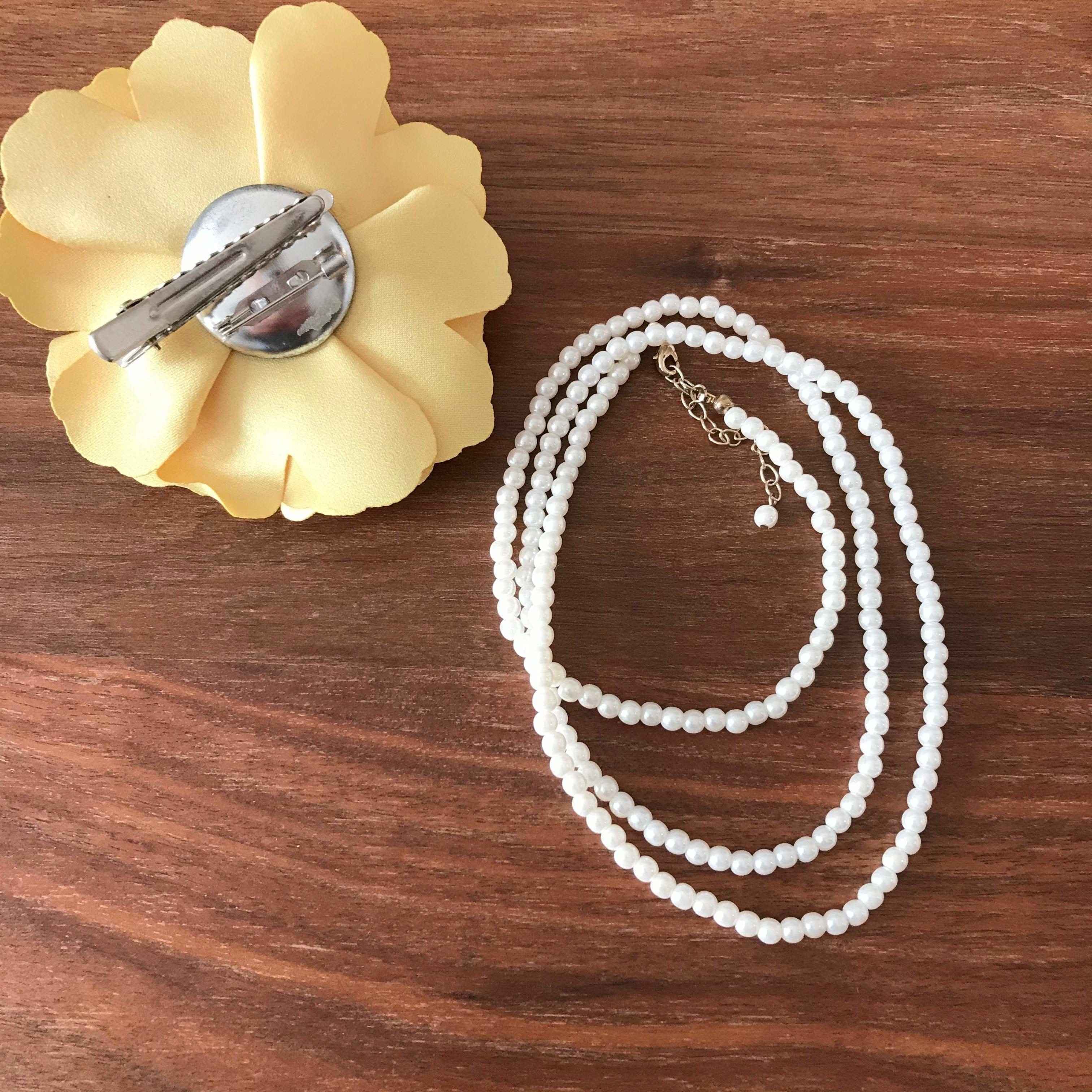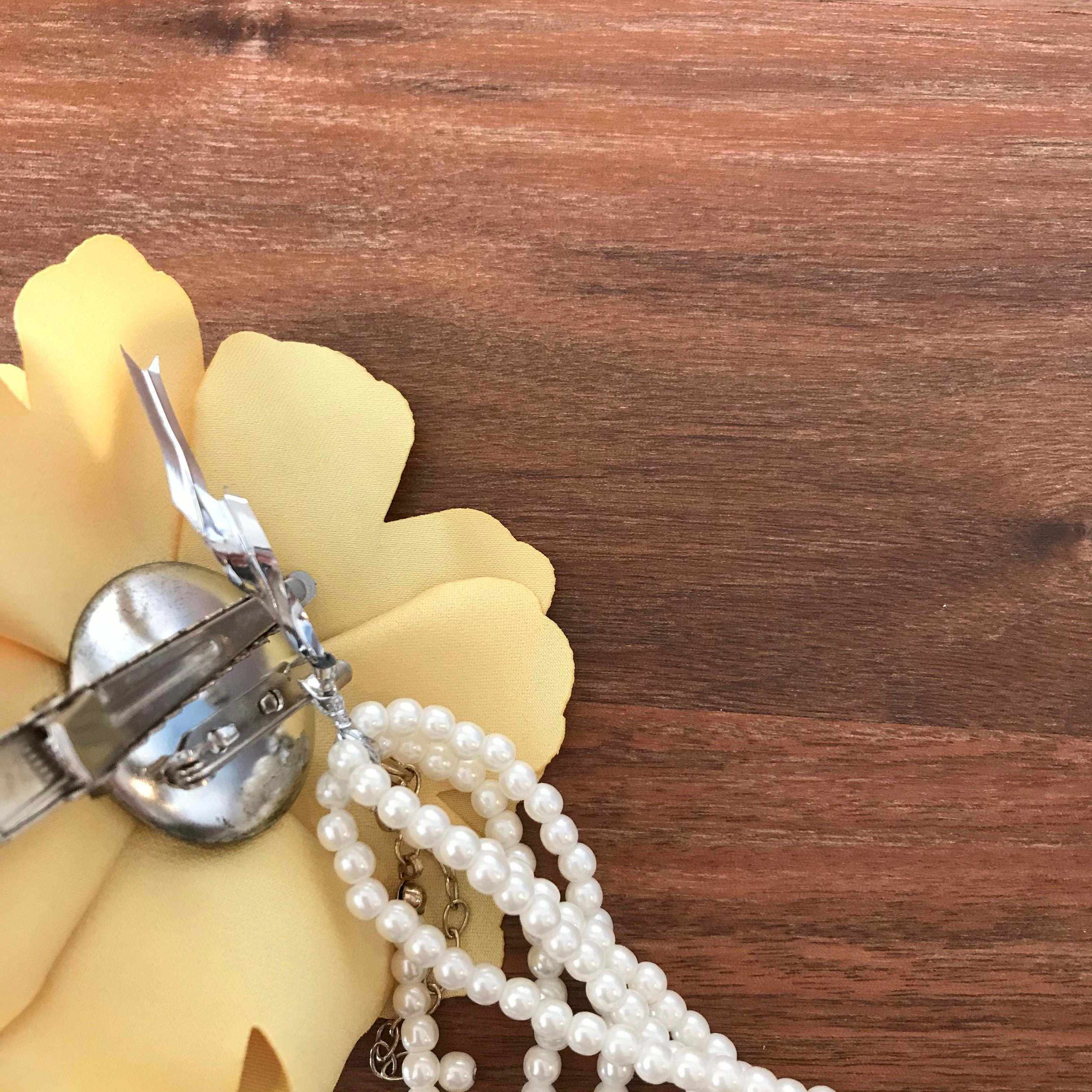 でもこれ、手持ちのヘアアクセサリーとパール調ネックレスを組み合わせてつくったものなんです。