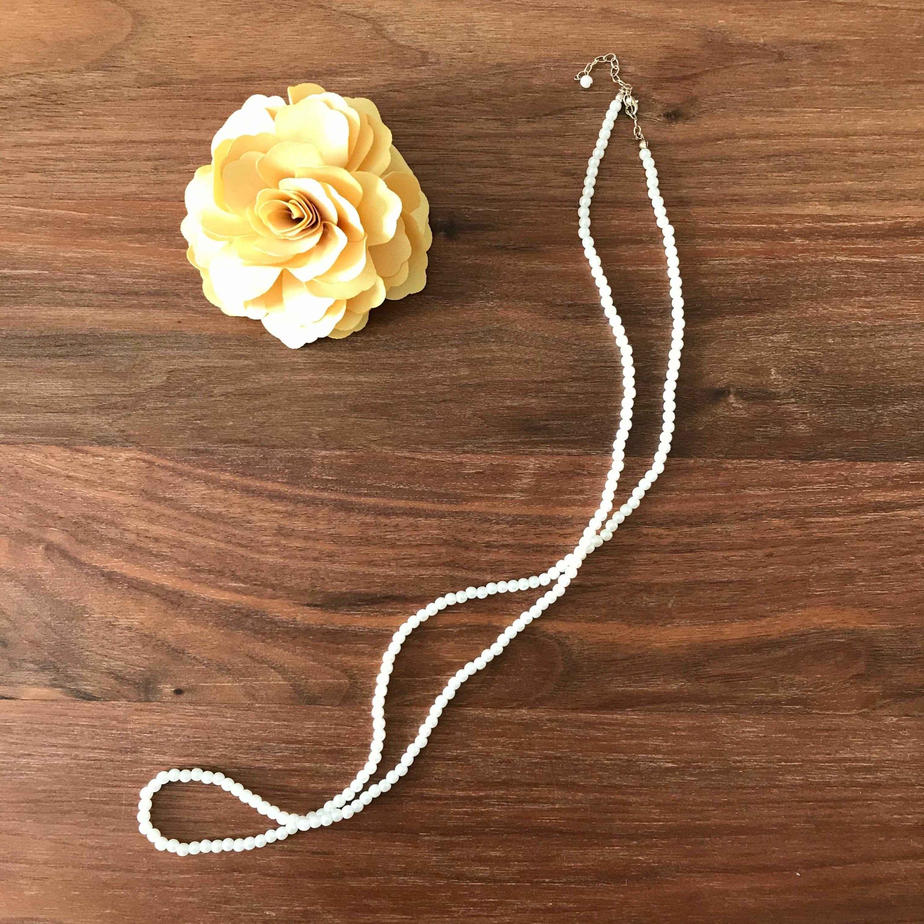 パール調ネックレスも、パール風のビーズを好きなようにつなげたものでもよいですし、ブレスレットでもOK。