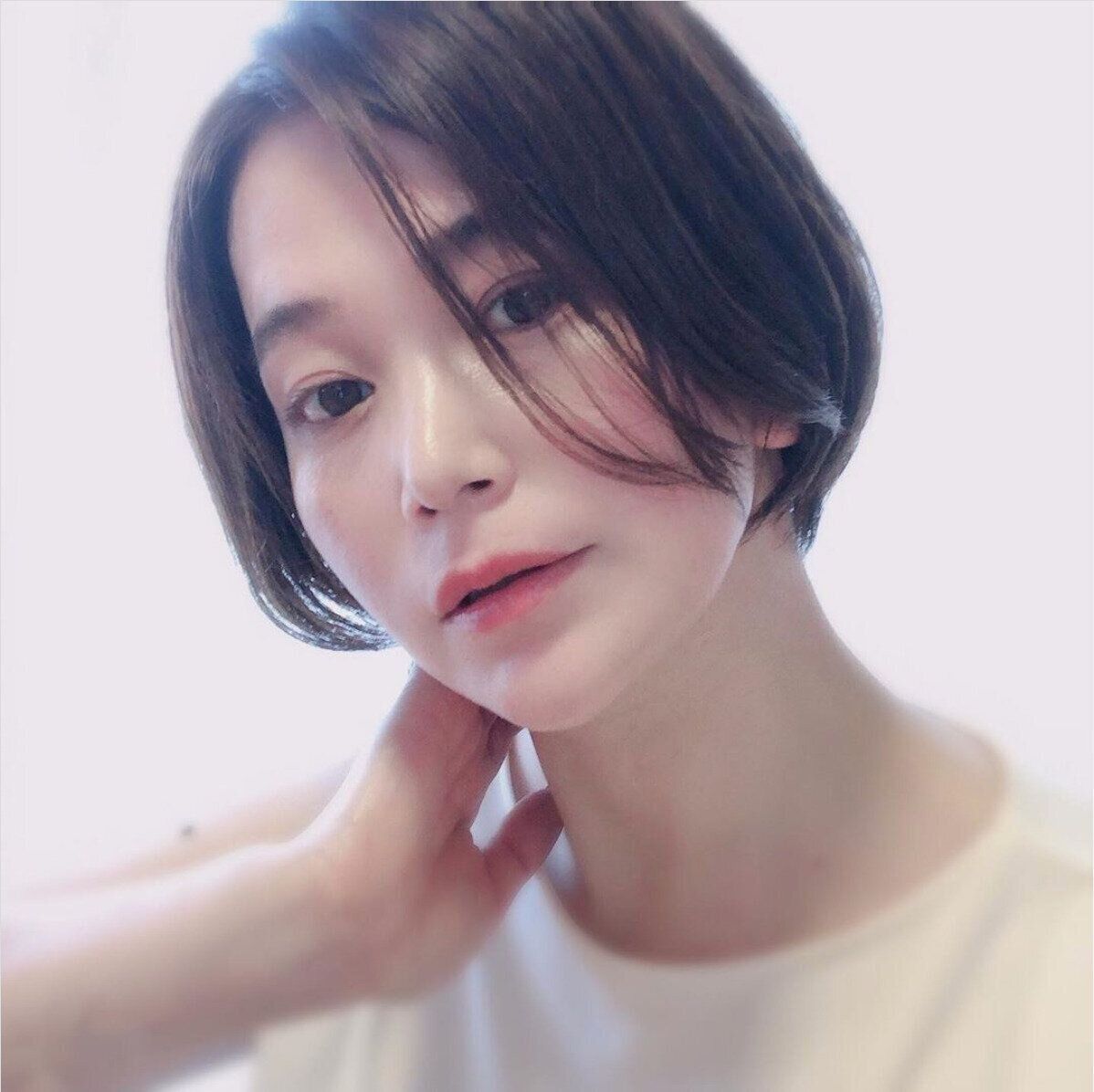 フランス女子を思わせるボリュームを抑えたショートヘアは、頭が一回り小さく見えるので小顔効果が高いヘアスタイルです。