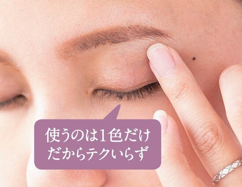 肌に溶け込んでツヤを出すクリームタイプのアイシャドウなら、だれでも簡単に印象的なまなざしがつくれます。最初に下地でまぶたをフラットに整えてから、アイシャドウをアイホールになじませると、自然な立体感が出せます。