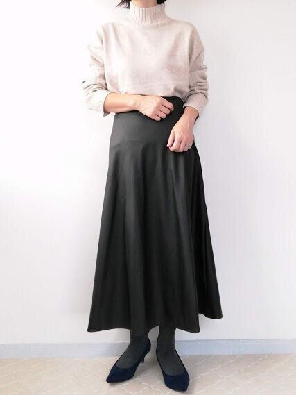 インナーの黒ニットをブルーにチェンジ!軽さと華やかさが加わり、「-5歳」見えするOKコーデに◎。ちらっとのぞく程度のインナーなら、ポイントになるカラーも取り入れやすいですよ。