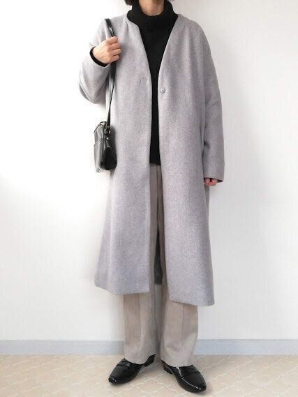全身定番カラーでまとめた、冬のアウタースタイルがこちら。どこにも遊びがない定番カラーオンリーだと、40代は「地味」を通り越して「老け見え」につながる可能性大!