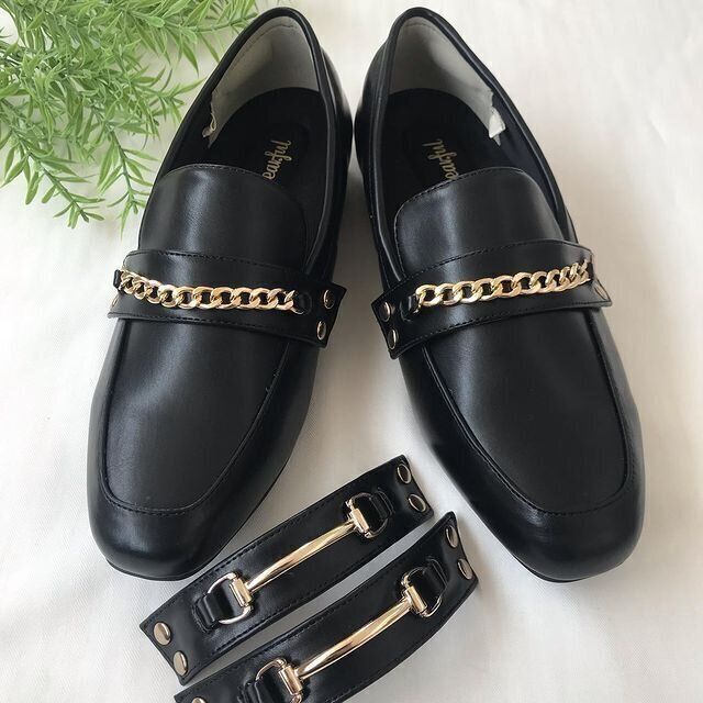 なんと、甲のベルトが着せ替え可能!定番の細ビットとコーデのアクセントになるチェーンの2種類。