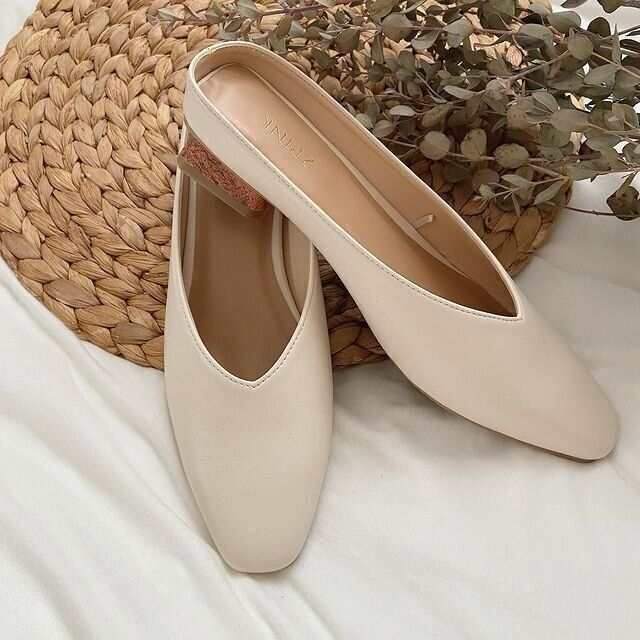 こちらはかかとを踏んで履ける2WAY仕様。ふわふわの中敷きで履きごこちがよいのもgood!