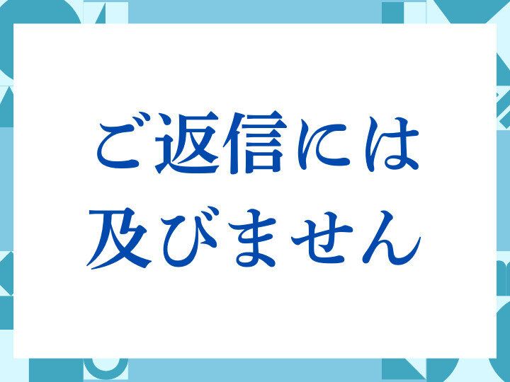 「及びません」は「〜する必要がない」「〜するほどではない」という意味を持つ言葉です。「ご返信には及びません」は、「返信は不要です」という意味になりますが、相手に対する配慮や遠慮を込めた丁寧な言い回しとして使われます。
