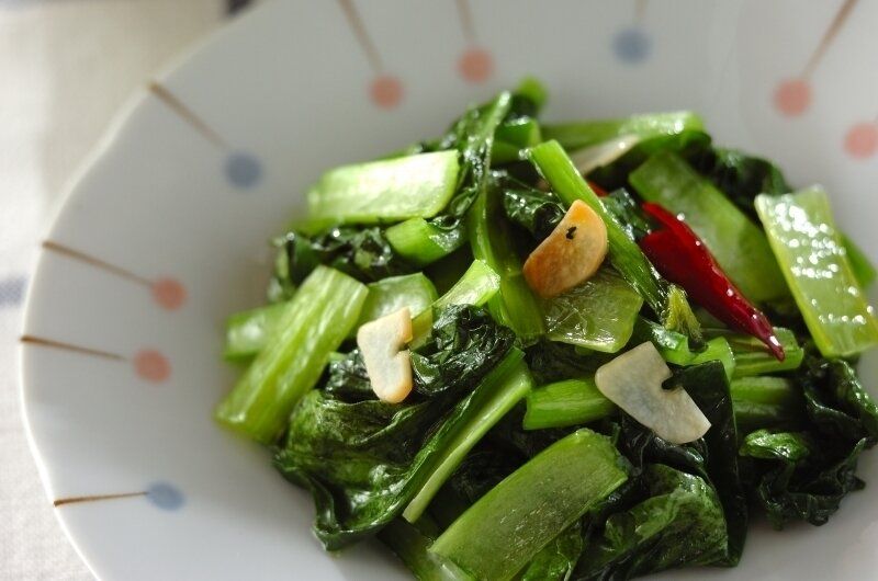 2つ目のおすすめレシピは、「小松菜ペペロンチーノ」です。ペペロンチーノとありますが、パスタは使用しないため、カロリーを抑えてジンを楽しむことができるでしょう。
