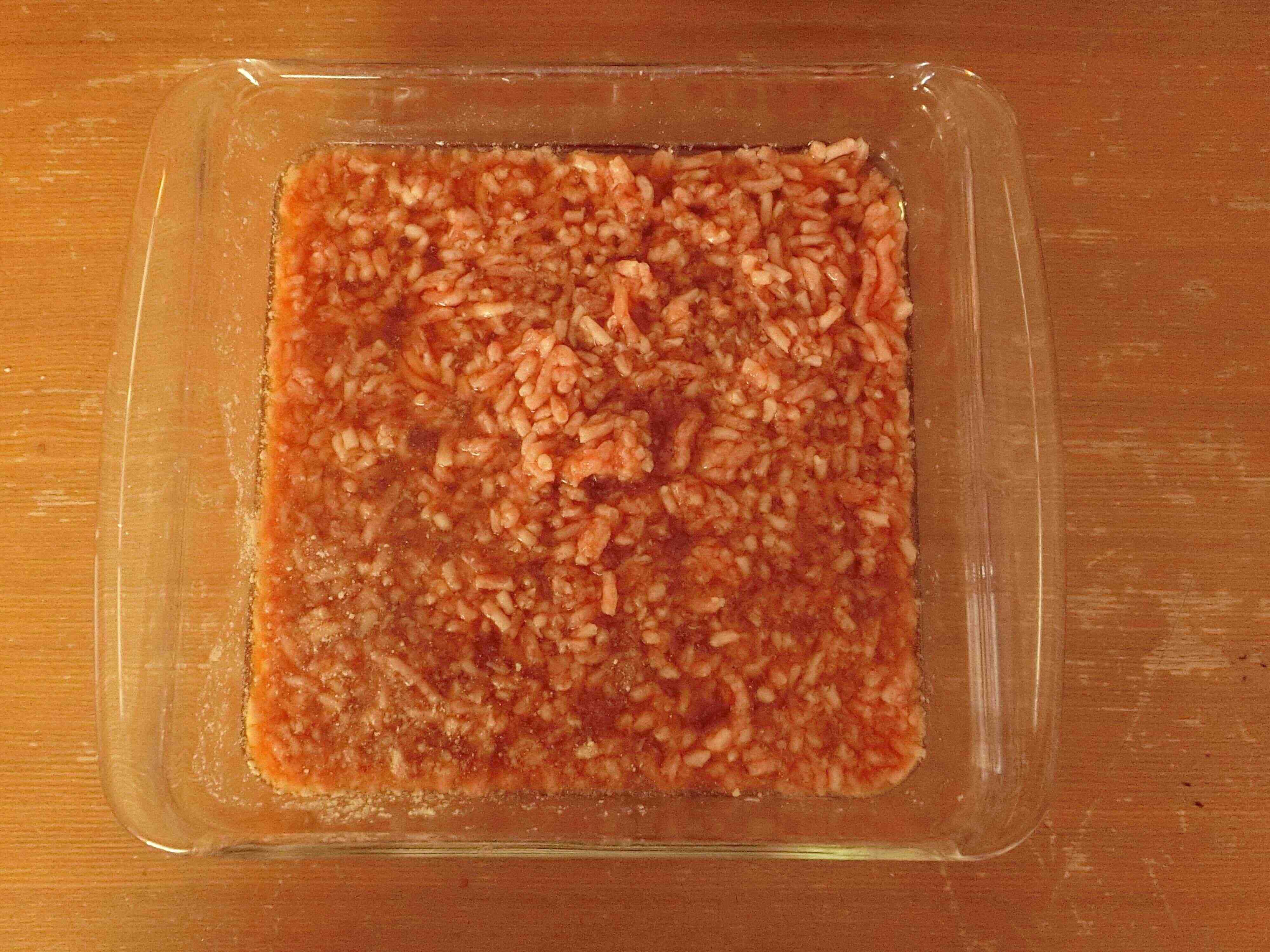 2.耐熱容器に豚ひき肉とAの材料を混ぜ合わせます。ふんわりラップをかけて電子レンジ600Wで3分加熱します。