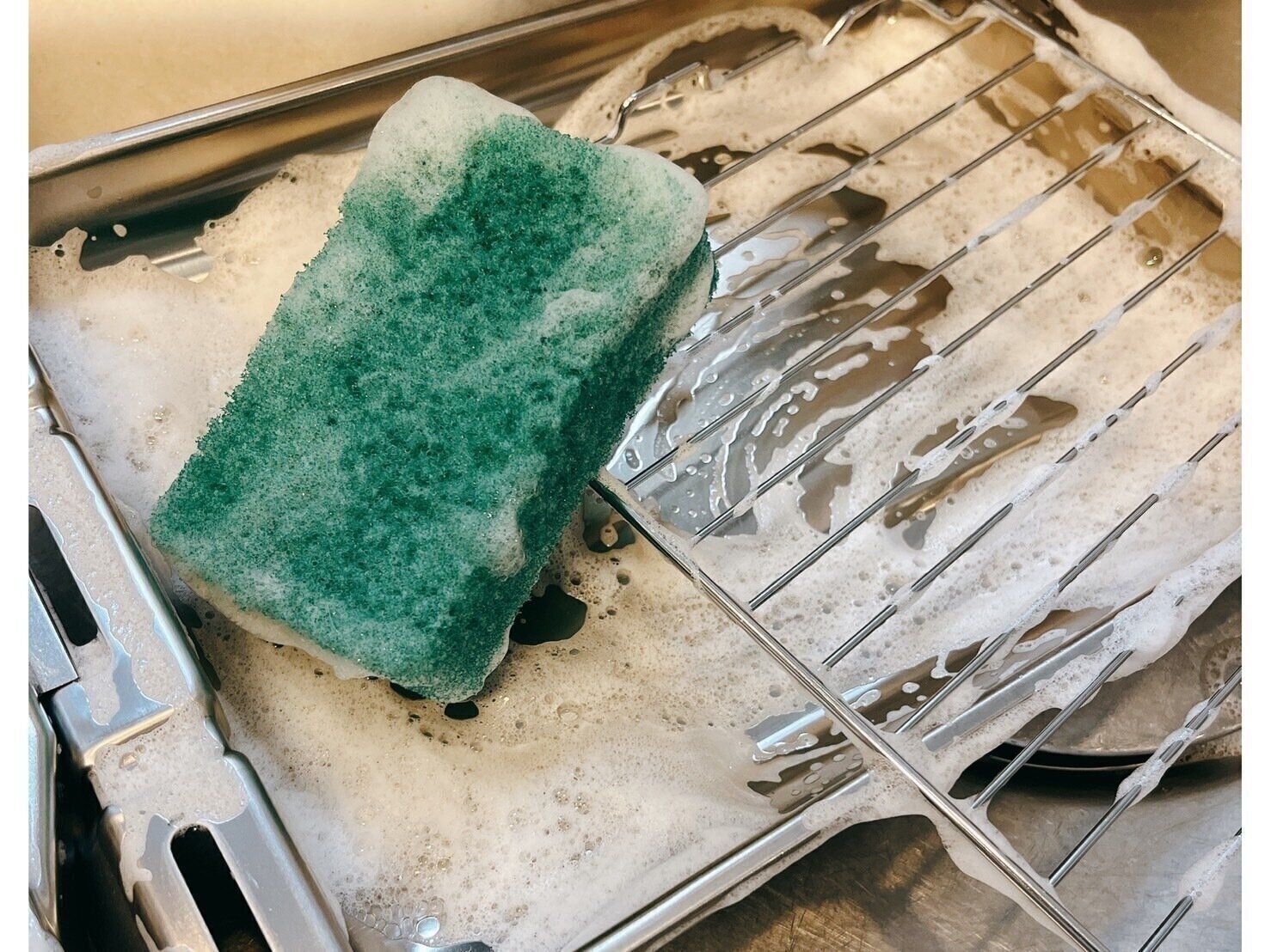 取り出したパーツを順番に洗っていきます。通常の汚れであれば、網、受け皿などは普段の食器洗いと同じく、食器用洗剤で洗うと、汚れは落ちます。ギトギトした油汚れであれば、少し熱めのお湯を使うと汚れも落ちやすくなります。