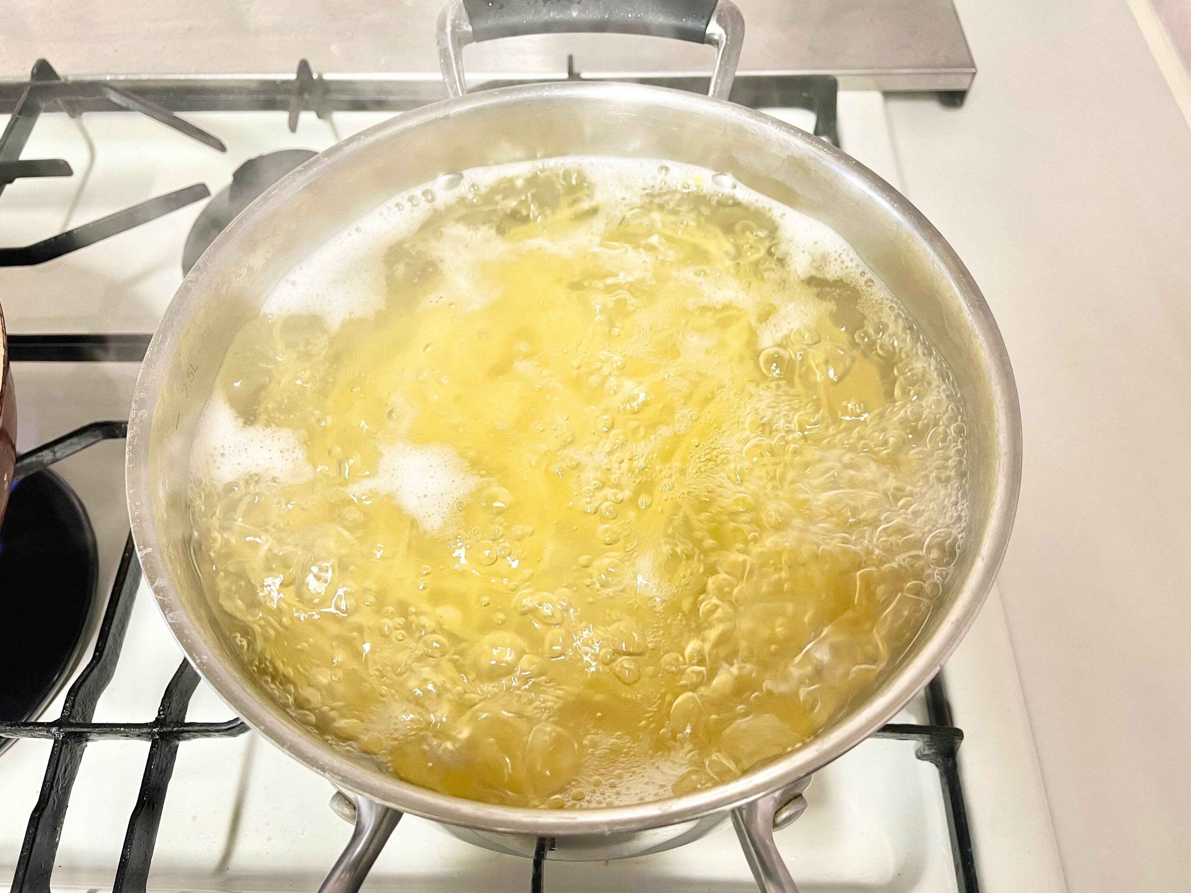 パスタのゆで汁には「サポニン」という成分が含まれています。これは洗剤に入っている界面活性剤と似た働きをするため、フライパンや食器の油汚れを落としてくれるんです。