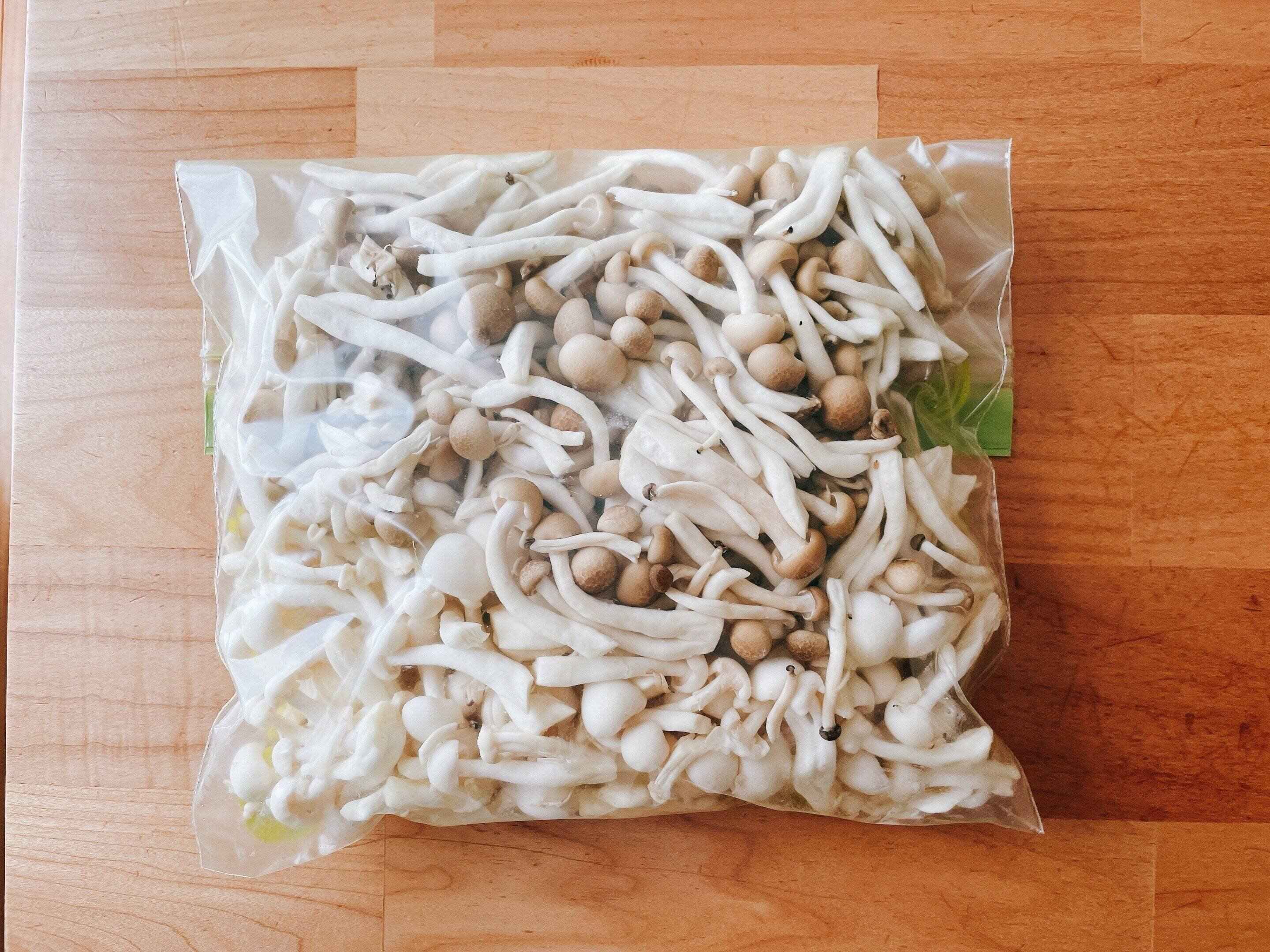 食材を洗った後に冷凍しようとすると水分を拭き取らなければならないのですが、きのこ類はその手間もありません。