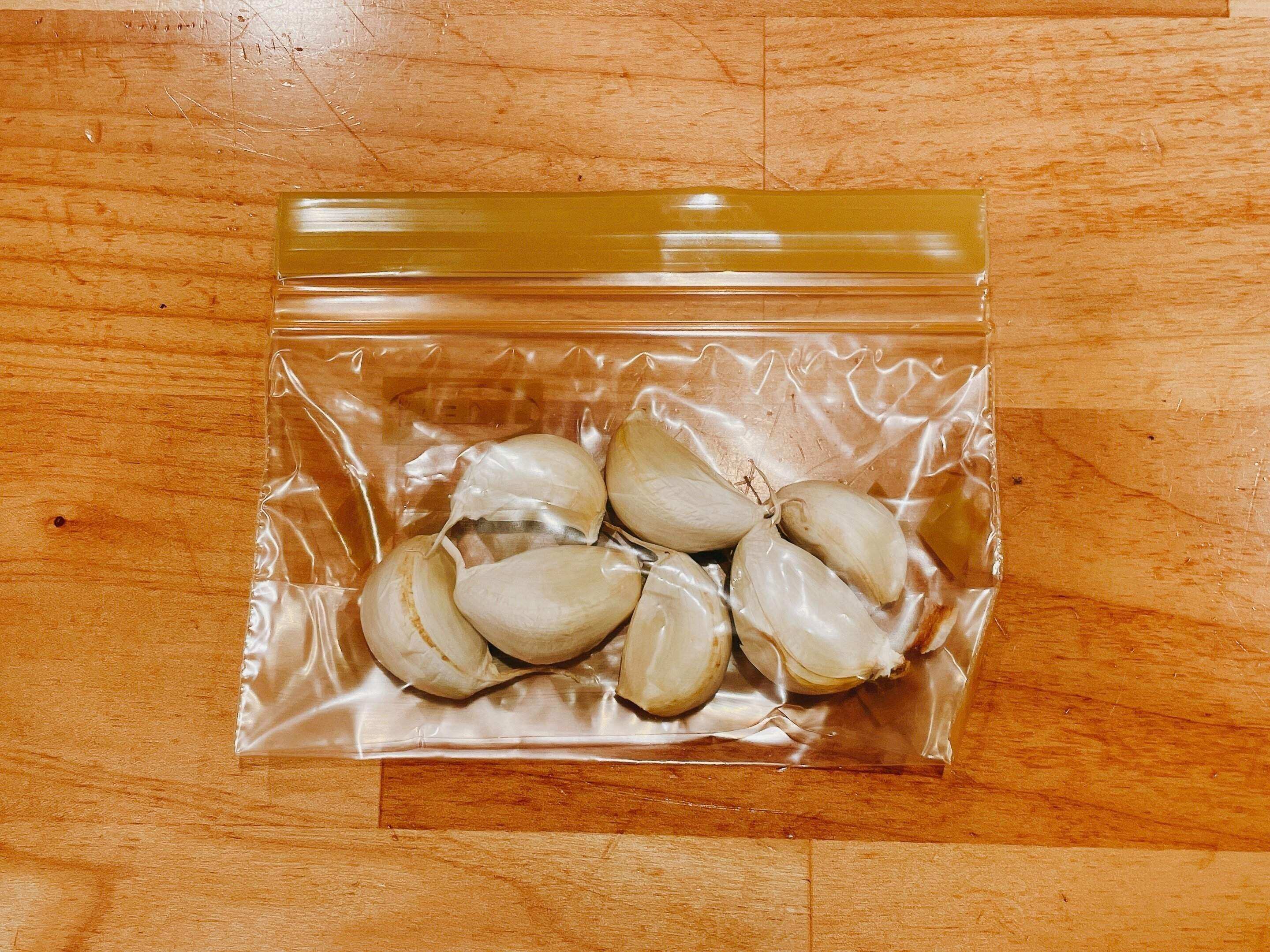 香りがそこまで落ちないのは、一片ずつバラバラにしてから、皮をつけたまま保存袋で冷凍する方法です。