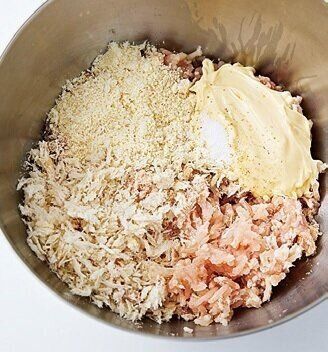 たねにはつなぎにマヨネーズを入れ、粉チーズを入れると、うまみとこくがUP!