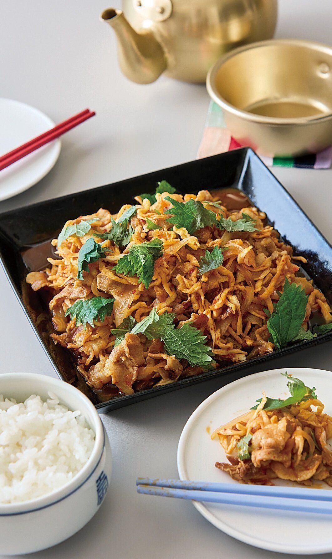 豚キムチ炒めに切り干し大根を加えると、違った食感が加わり、おいしさアップ。