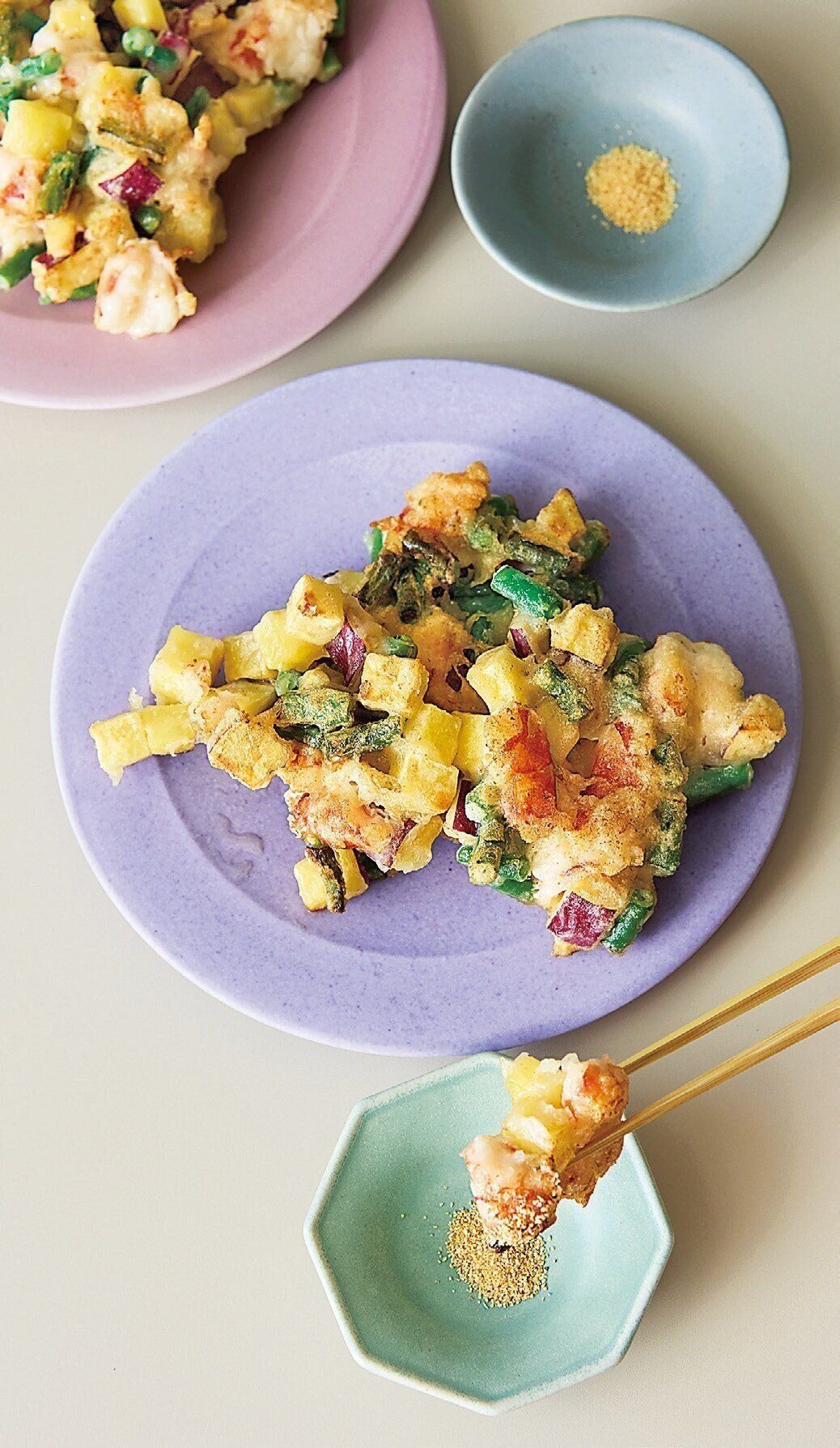 えびとさつまいもといんげんのかき揚げ