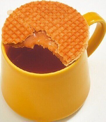 オランダ発のワッフル菓子。ホットドリンクの湯気で生地をしっとりさせるのが本場流。しとっとした食感に、とろっと溶けたキャラメルがとにかく絶妙です。