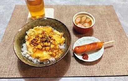 時間のない平日は、品数へのこだわりは捨て、残り物も堂々と活用。「当たり前に行っていた面倒な工程を、いかに省くかも時短のカギです」。面倒なオムそばも、電子レンジ1発で作ることに成功!