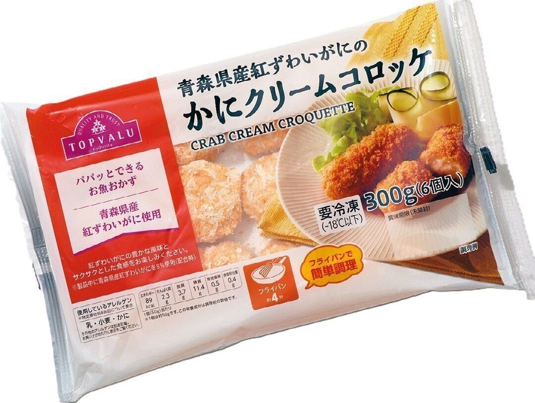 イオン トップバリュ「青森県産紅ずわいがにのかにクリームコロッケ(-18℃)」(300g)¥429/トップバリュ https://www.topvalu.net/
