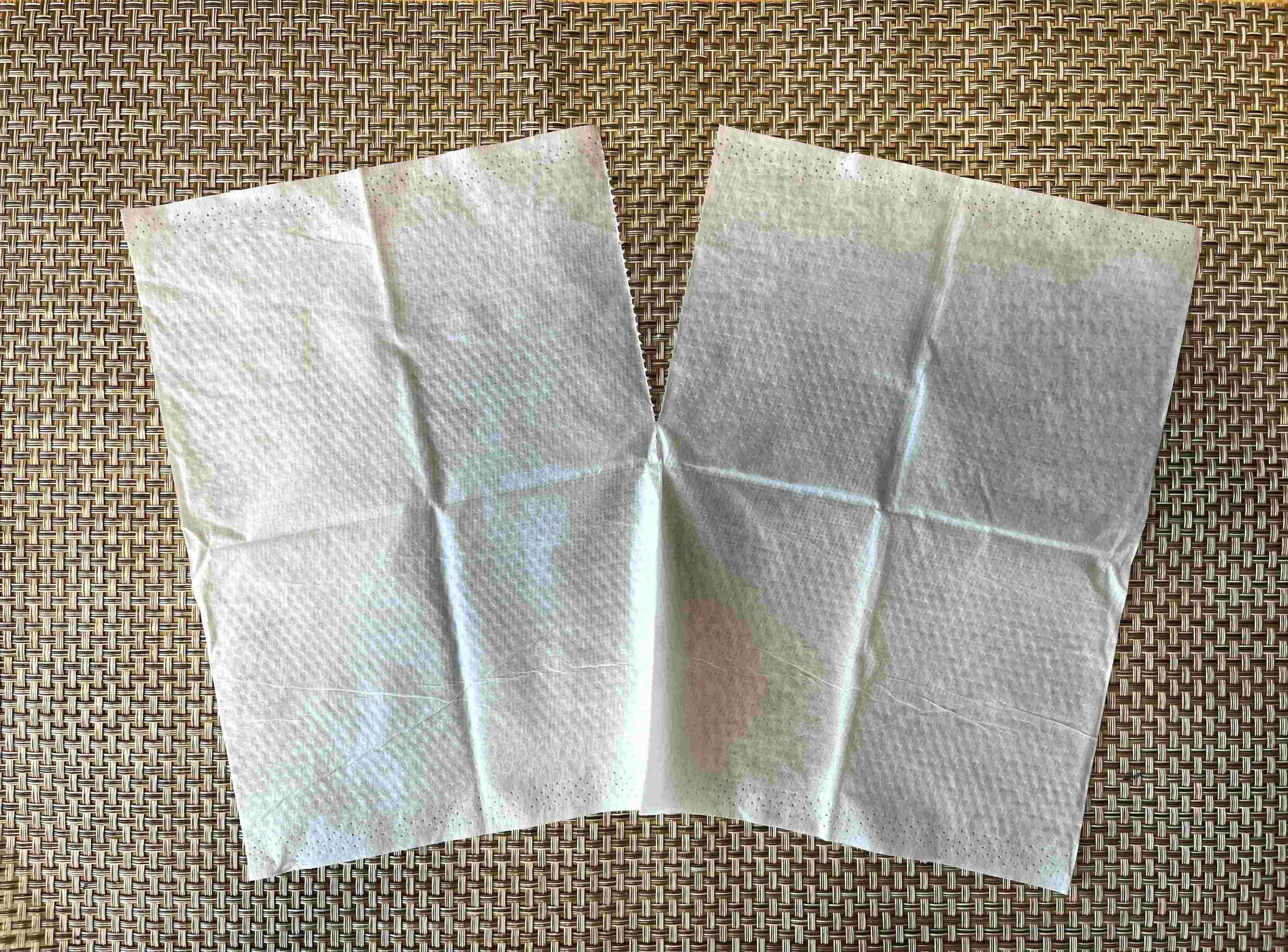 シートが丈夫で大判、真ん中に切り取り線が入っているので二枚に分かれるところも魅力。これだけで便器、床、壁をキレイに掃除できますよ。