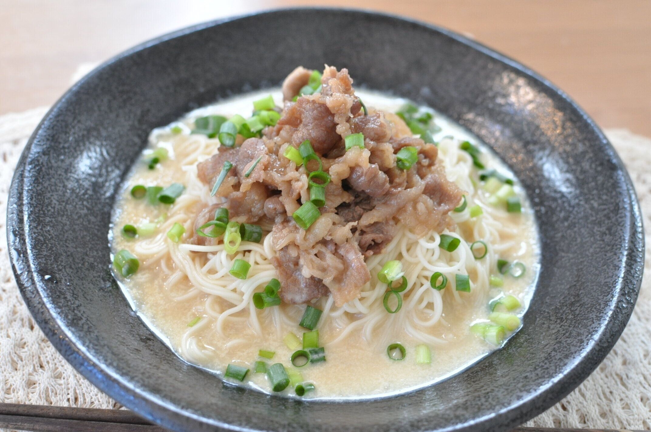 牛肉入りで食べ応えもあり、あっさりしがちなそうめんがガッツリメニューに変身してくれます。汁は麺つゆを豆乳で割るので、コク旨に!