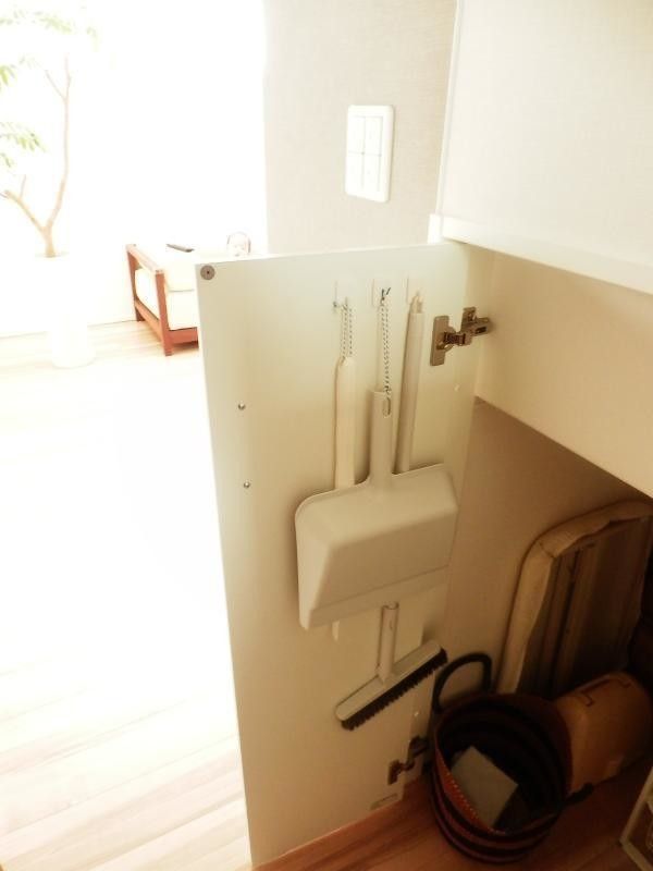 掃除用品は一箇所にまとめていつでもお掃除できるように。汚れが気になった時にすぐに選べます。収納にも適したちりちりとりは190円。