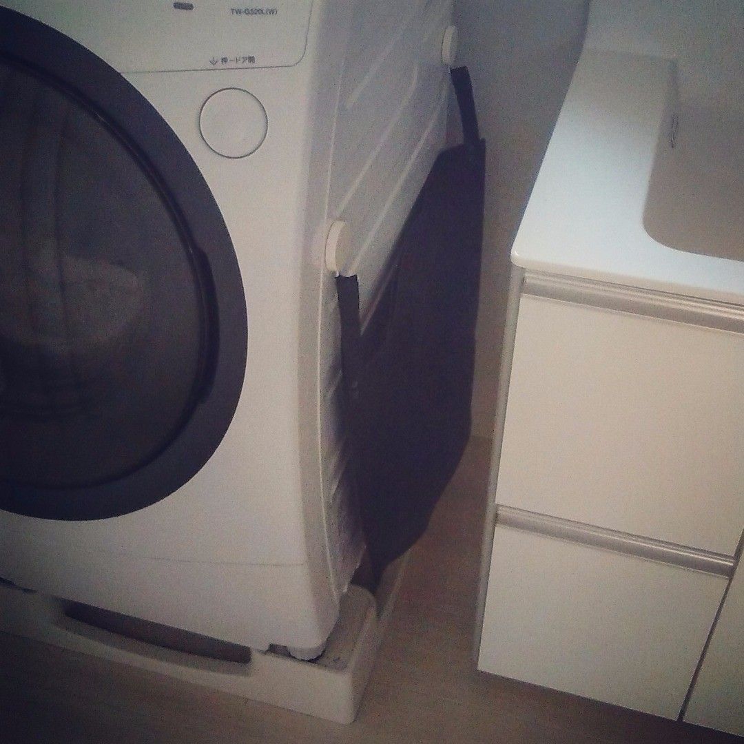 洗濯カゴは使い終わると場所をとって掃除の邪魔にもなりかねません。そこを助けるのが、マグネットタイプのアルミフック。引っ掛けておけば、掃除機もかけやすいです。