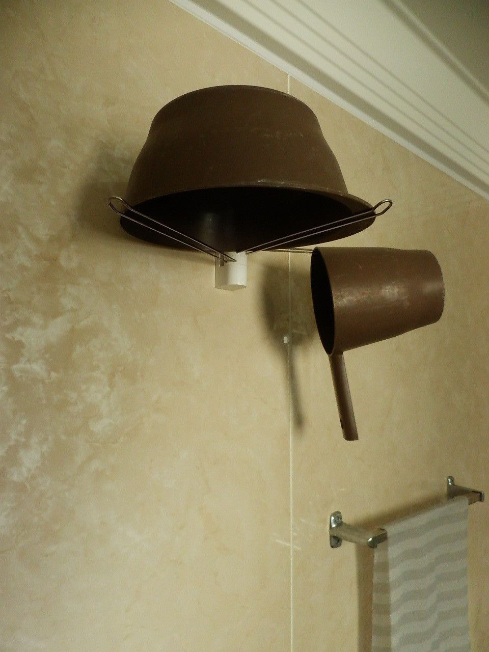 マグネット式のハンガーを洗面器干しに。面白い発想! お風呂場は何よりも入浴後の湿気対策が重要です。掃除しやすい環境作りが掃除の第一歩!
