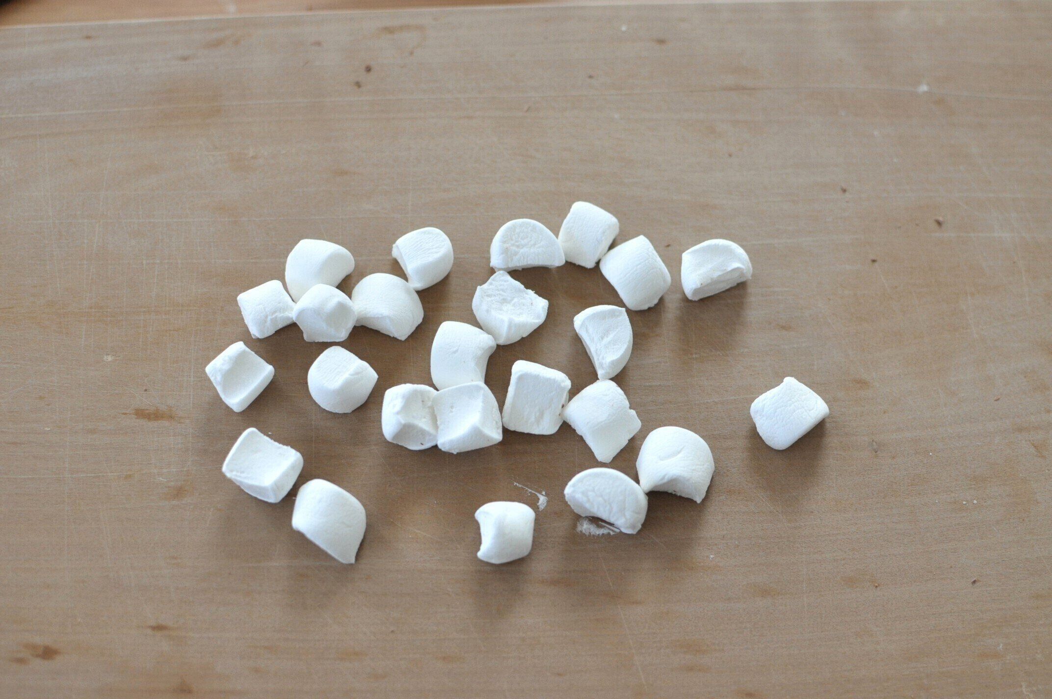 マシュマロは、小さく切っておきます。(1/4くらい)